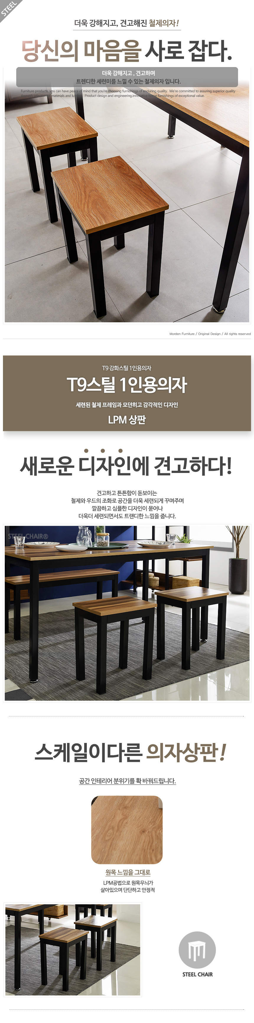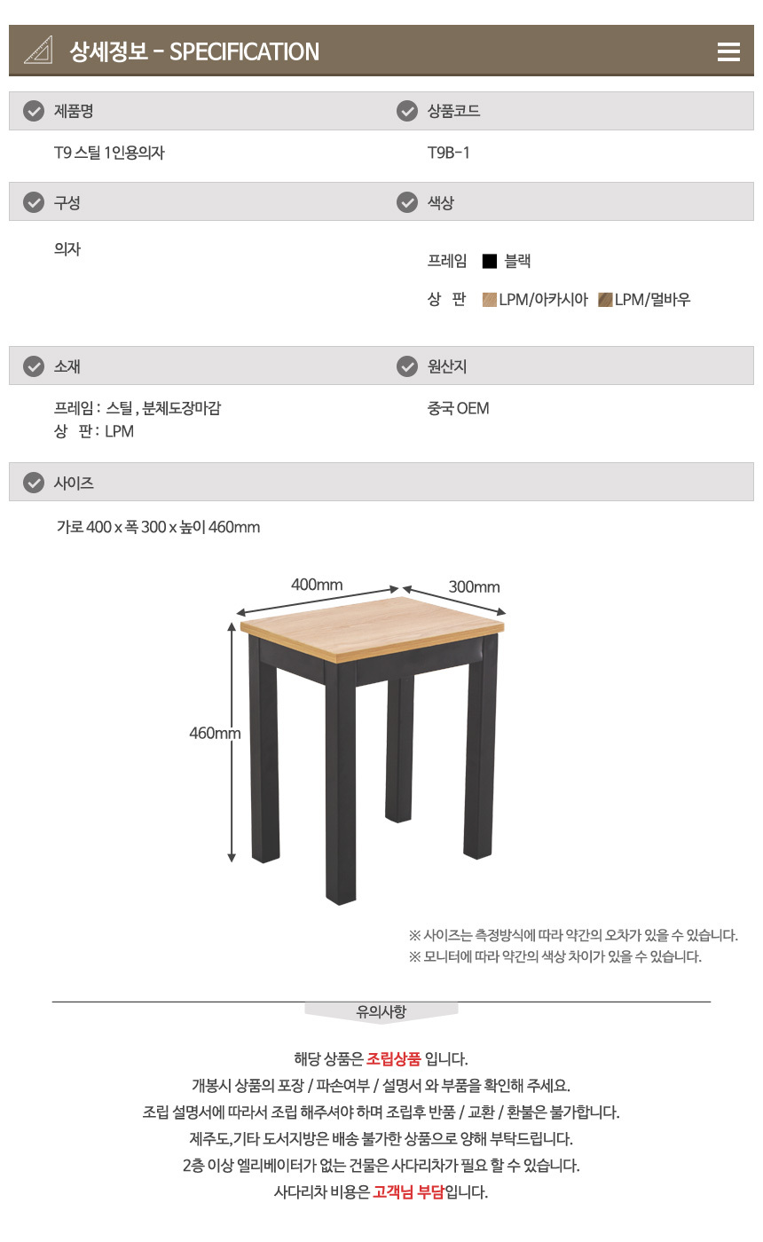 1인용 철제의자 T9B-1 식탁 테이블 보조스툴 카페체어