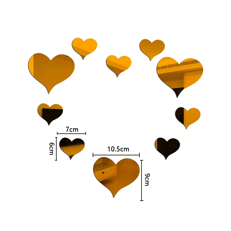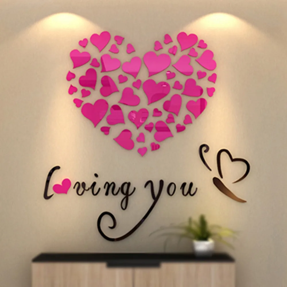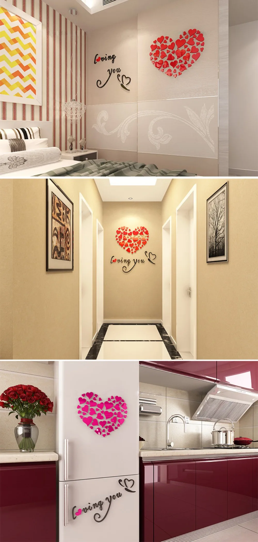 1 세트 사랑 심장 아크릴 벽 스티커 DIY 3D 거울 벽 스티커 거실 침실 배경 벽 웨딩 장식