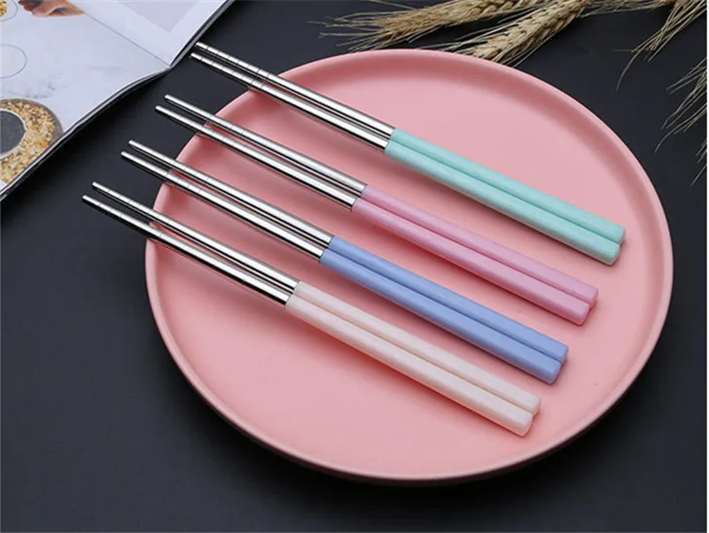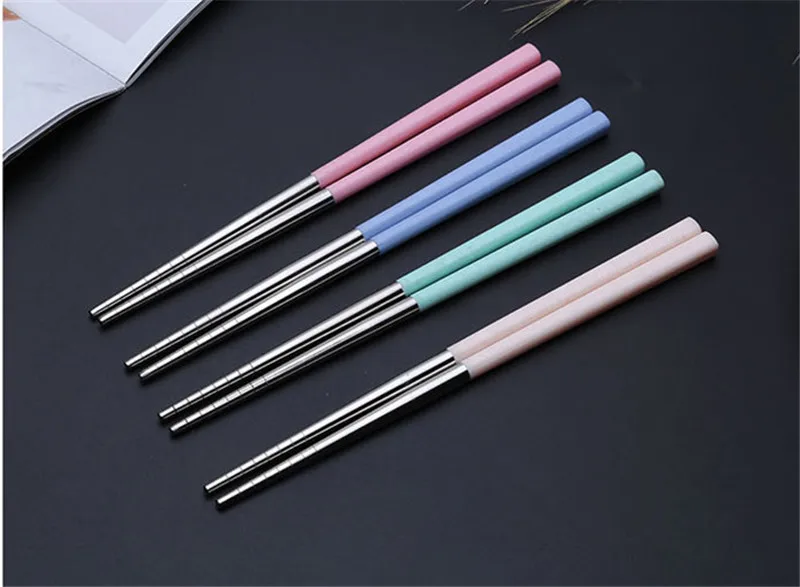 1 쌍 스테인레스 스틸 젓가락 한국어 휴대용 여행 금속 젓가락 음식 스시 스틱 미끄럼 방지 재사용 가능한 청소하기 쉬운