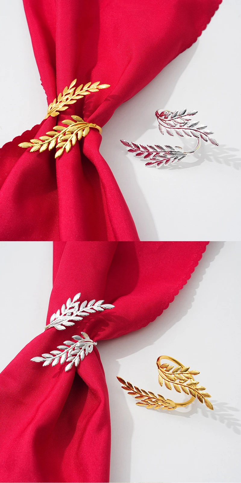 1/6/12Pcs실버 잎 냅킨 링 금속 냅킨 링 홀더 웨딩 장식 주방 식탁 장식 호텔 냅킨 링