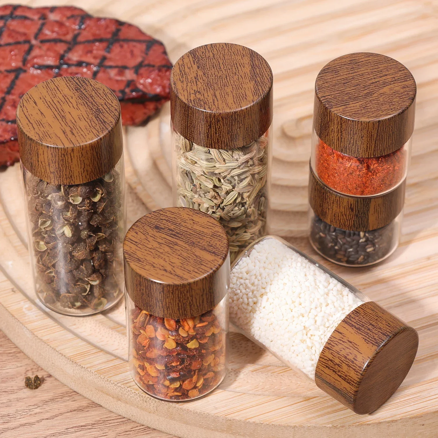 10/20/30ml 커피 콩 저장 용기 작은 유리 항아리 향신료 조미료 견과류 튜브 나무 봉인 된 병 밀폐 용기