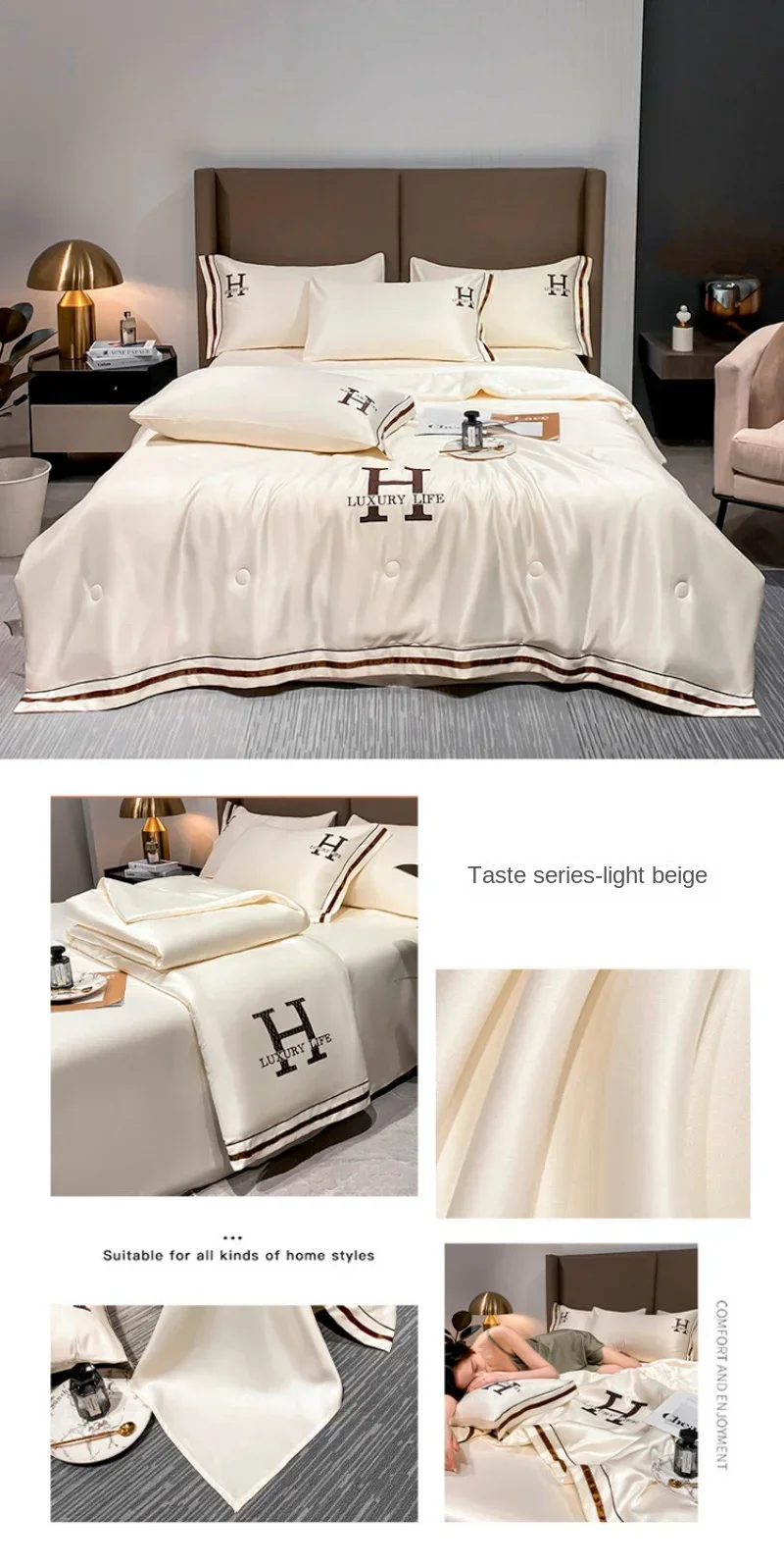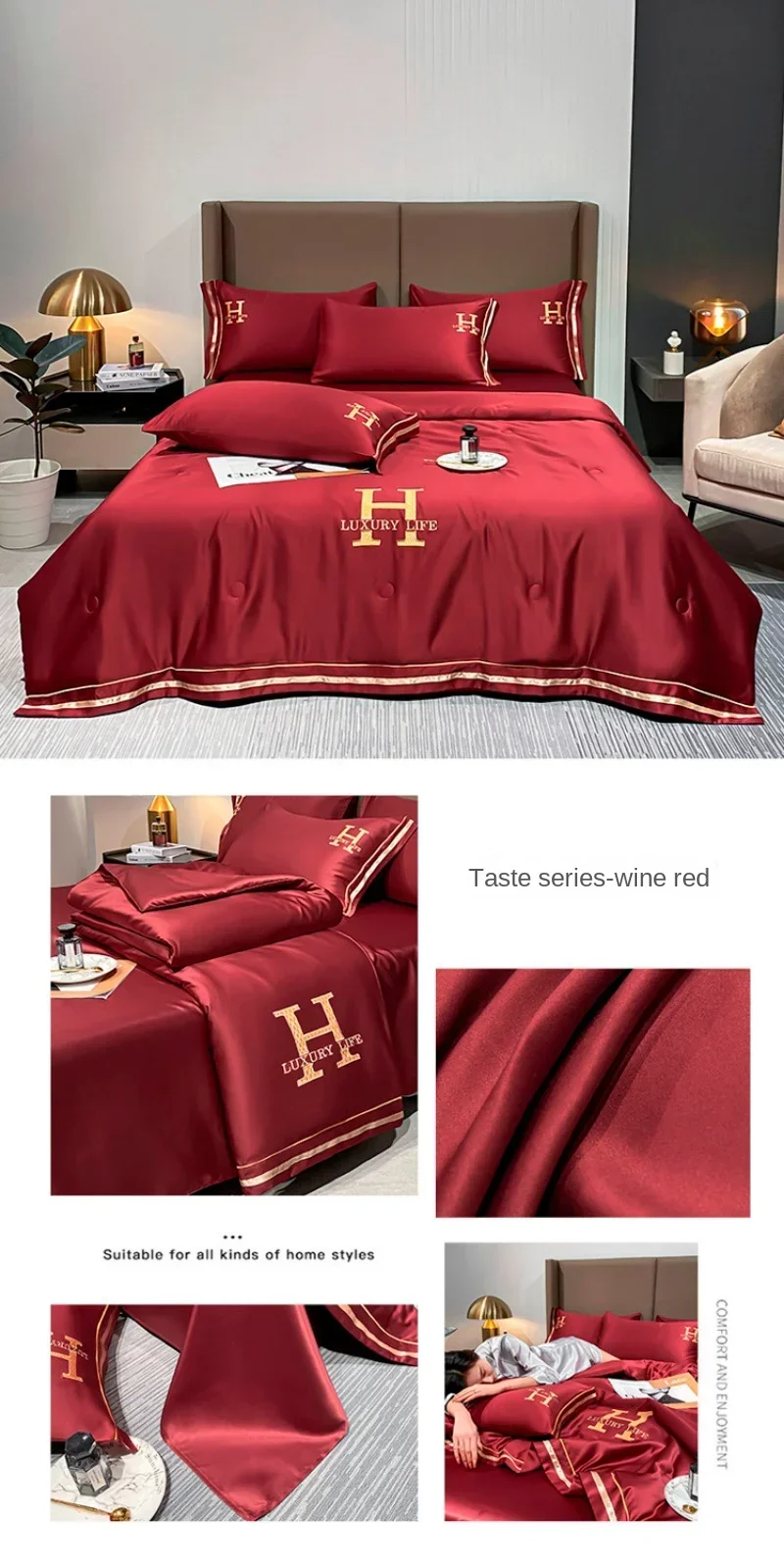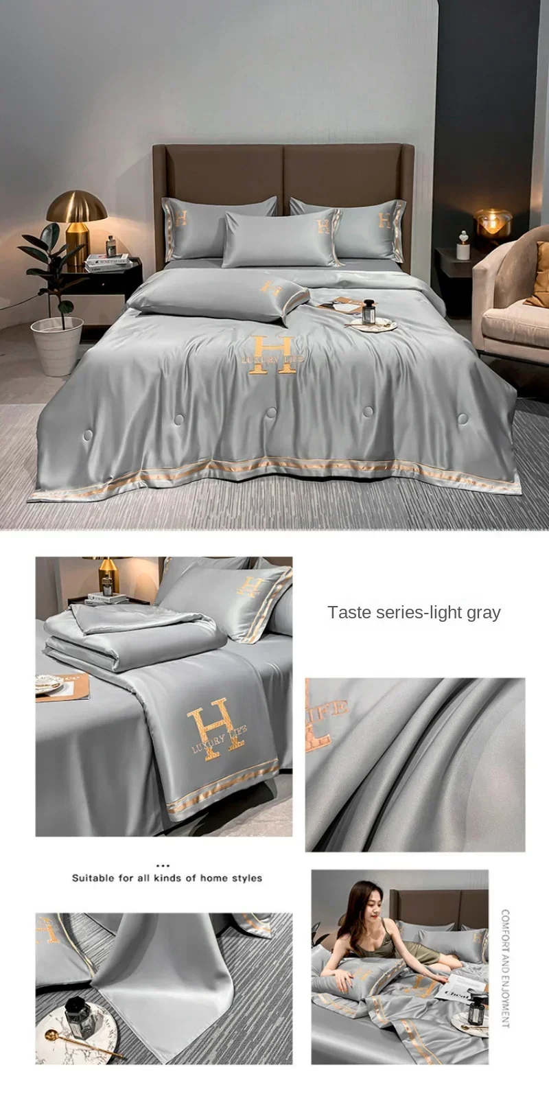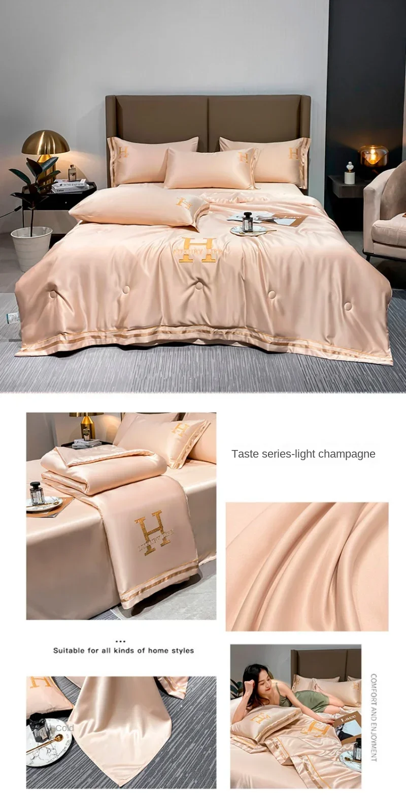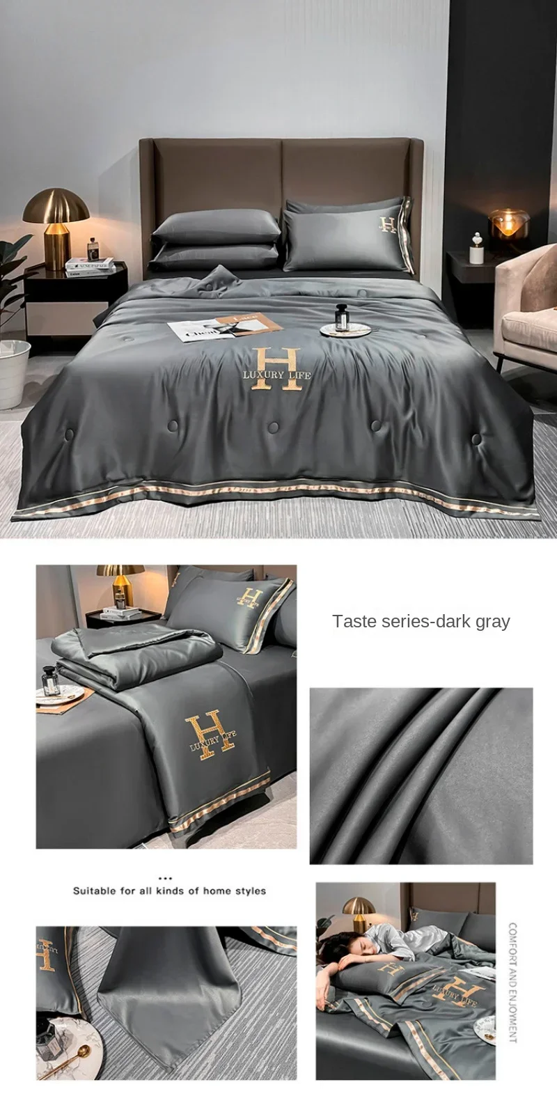 100% 세척 실크 여름 퀼트 자수 부드러운 얼음 냉각 이불 침대 부드러운 단단한 담요 부드러운 시원한 여름 담요