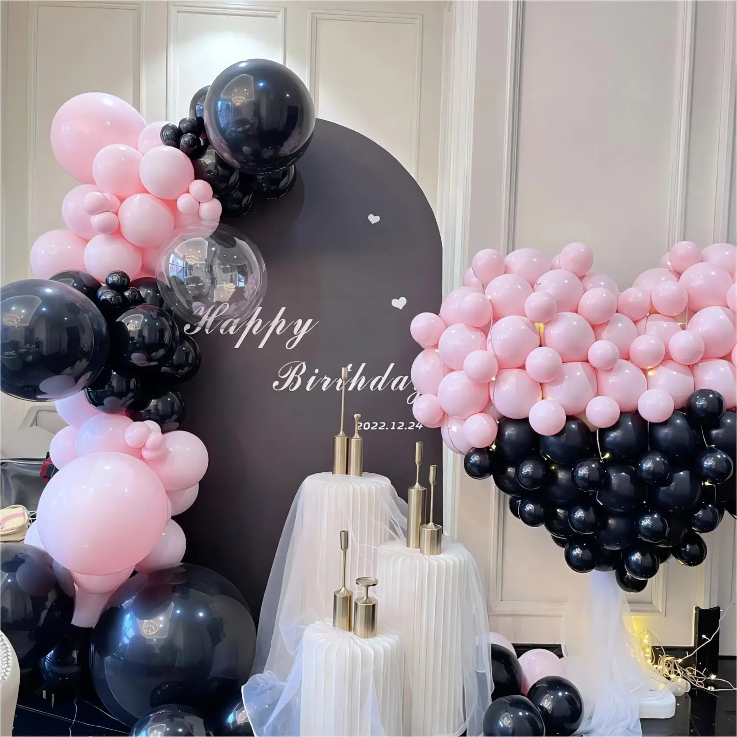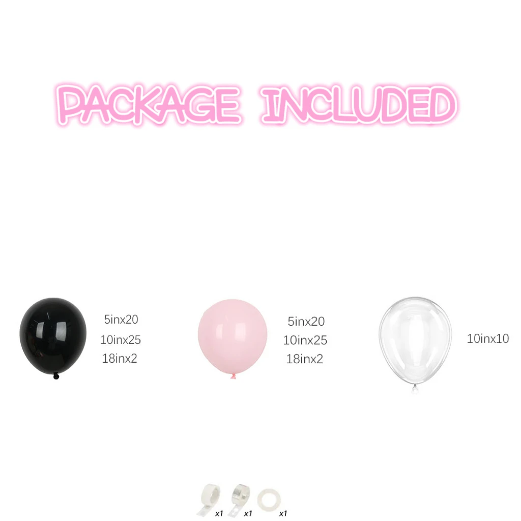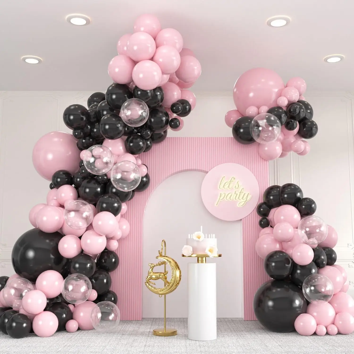 107Pcs 핑크와 블랙 풍선 화환 아치 키트 발렌타인 데이 웨딩 아기 생일 파티 장식을위한 투명 풍선