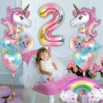 10pcs 유니콘 호일 풍선 세트 숫자 1-9 마카롱 무지개 구름 풍선 베이비 샤워 웨딩 소녀 생일 파티 장식