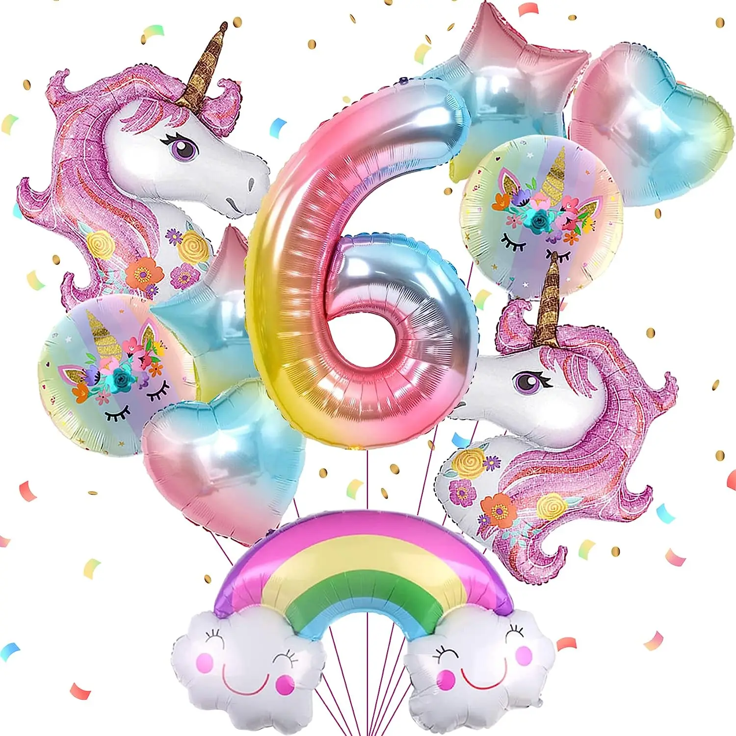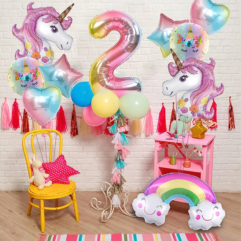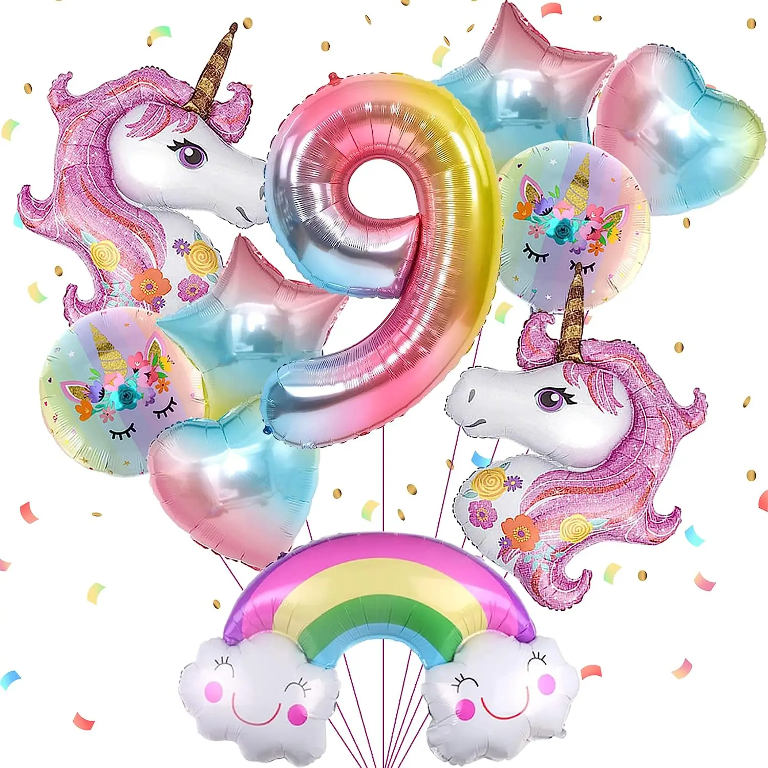 10pcs 유니콘 호일 풍선 세트 자리 1-9 마카롱 무지개 구름 풍선 베이비 샤워 웨딩 소녀 생일 파티 장식