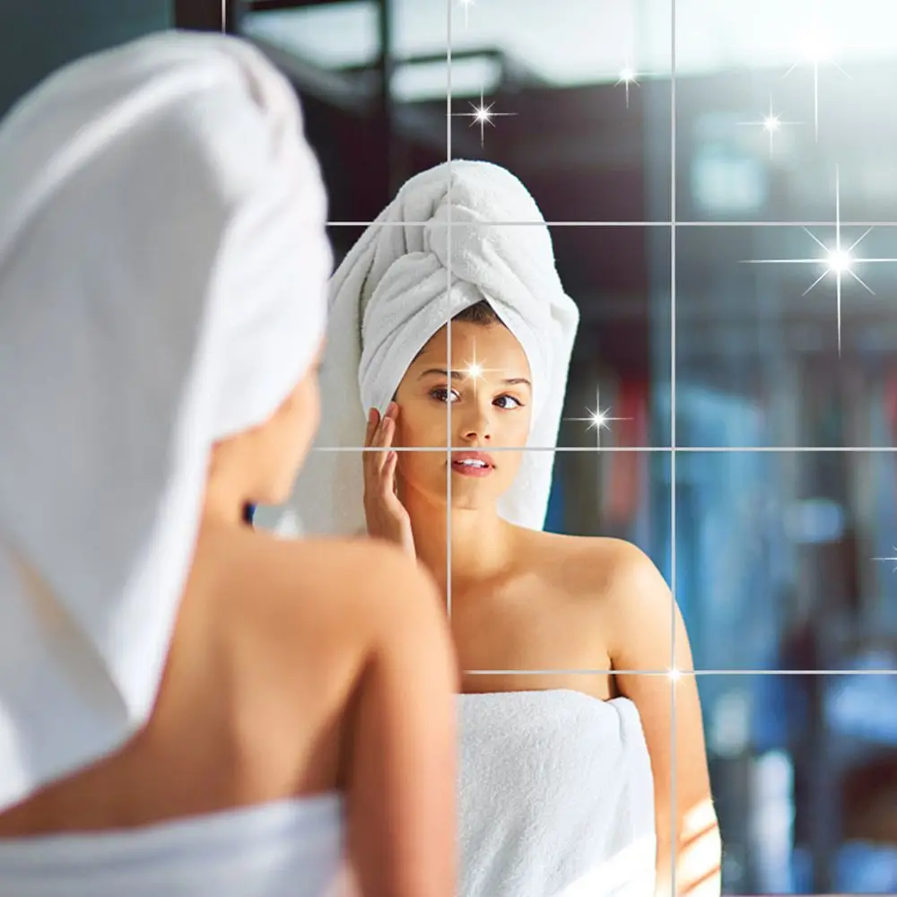 10pcs 홈 장식 욕실 자기 접착 벽화 거울 스티커 벽 타일 스티커 광장 DIY 데칼