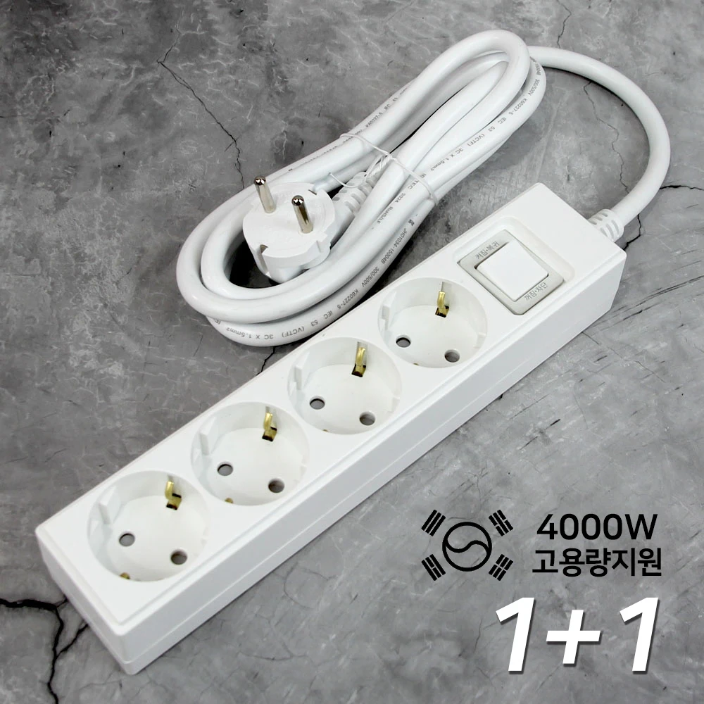 1+1 원스탑 4000W 고용량 과부하차단 스위치 멀티탭 4구 2M