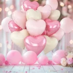 12Pcs Baby Pink Cream White Heart Shaped Foil Balloons 18In Heart Balloon for Birthday Anniversary Wedding Valentine’s Day Party