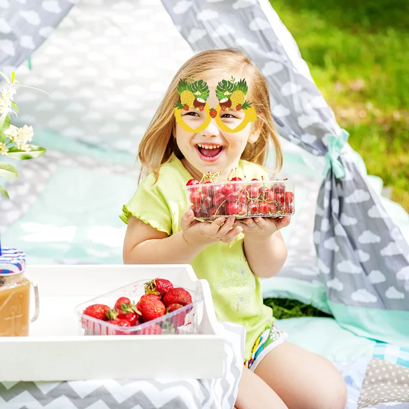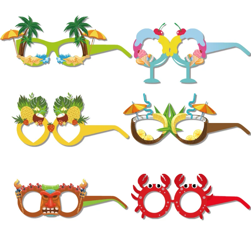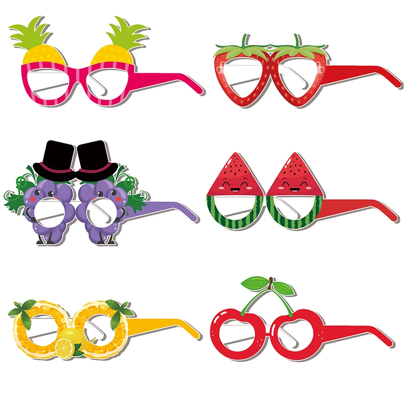 12pcs 재미 있은 여름 파티 열 대 과일 파인애플 딸기 종이 안경 어린이 풀 루아 우 하와이 해변 테마 파티를 선호합니다