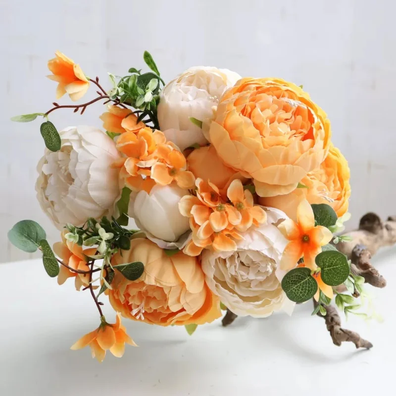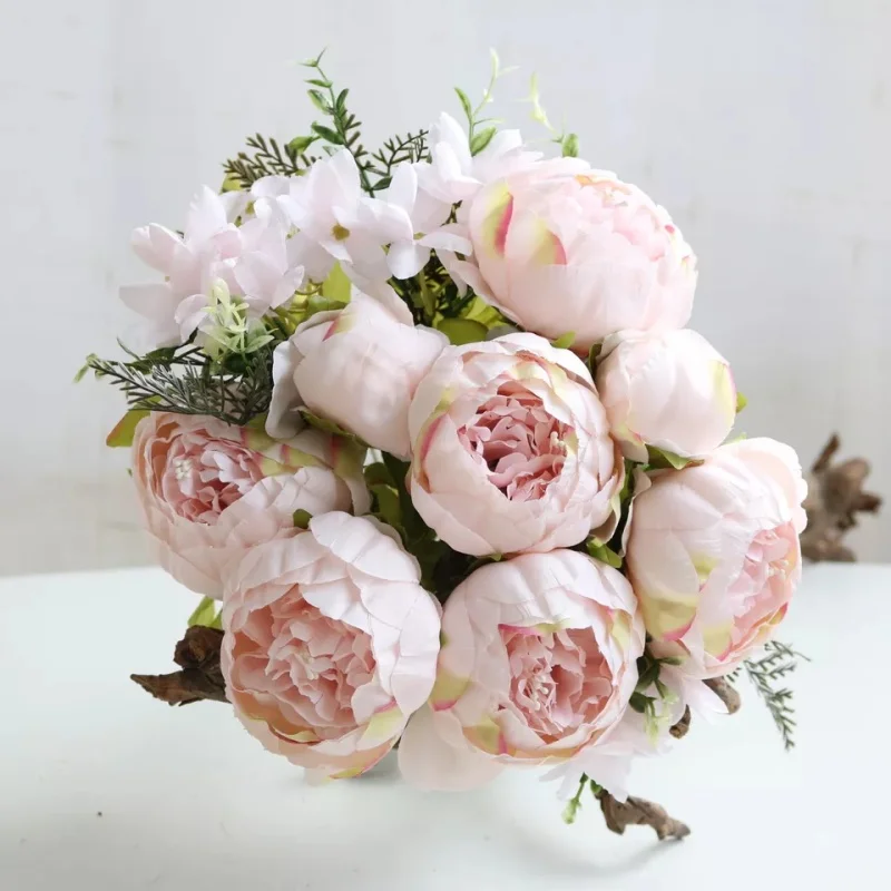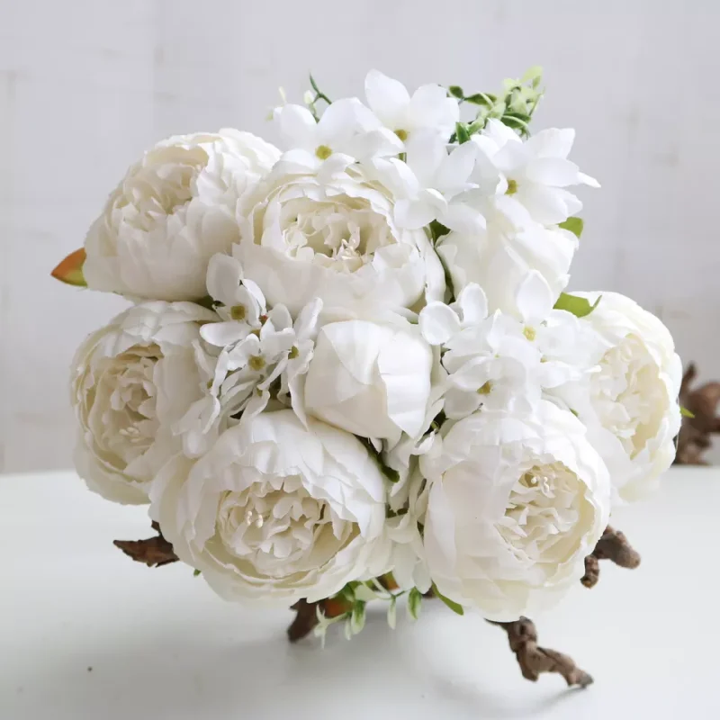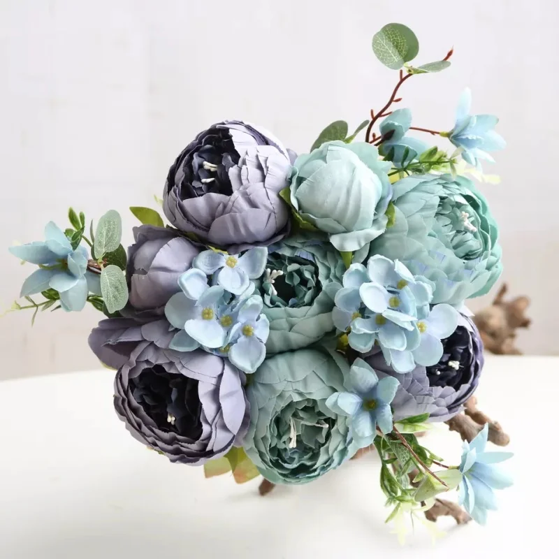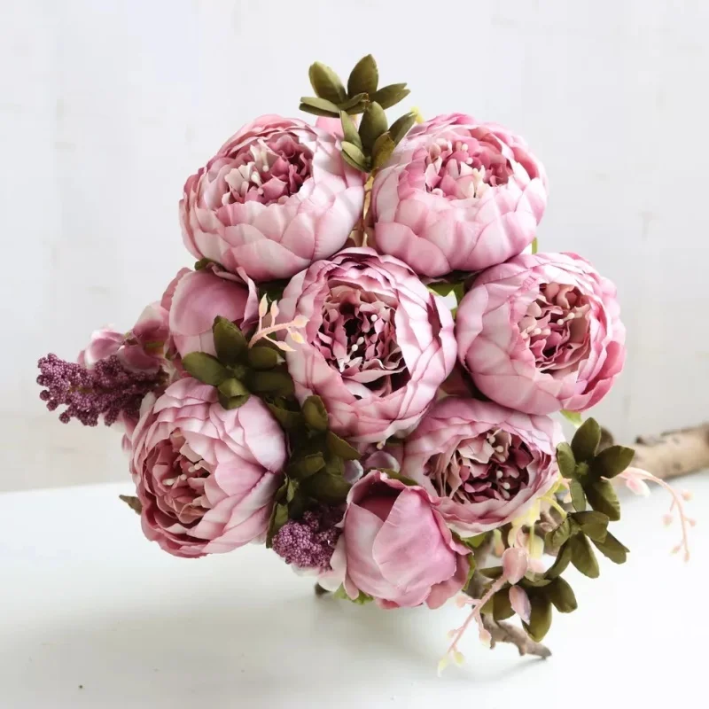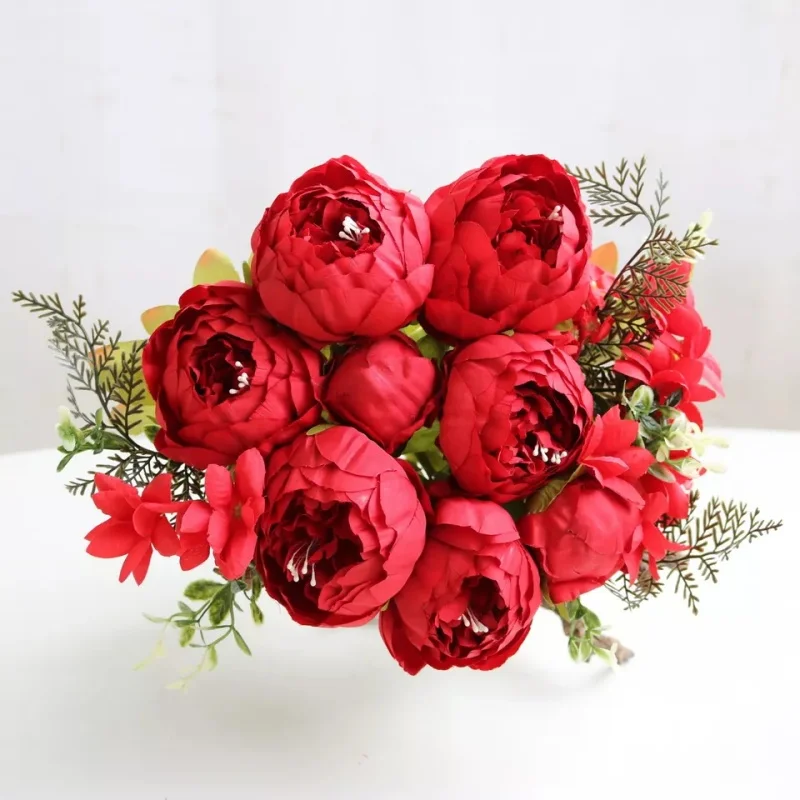 13 머리 실크 모란 인공 가짜 꽃 웨딩 부케 홈 인테리어 장식품 파티 장식