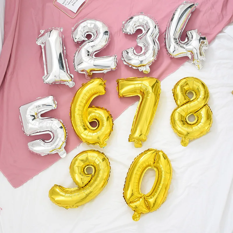 16/32/40 인치 디지털 호일 풍선 로즈 골드 실버 그라디언트 번호 0-9 생일 파티 웨딩 장식 베이비 샤워 글로브