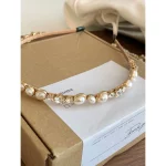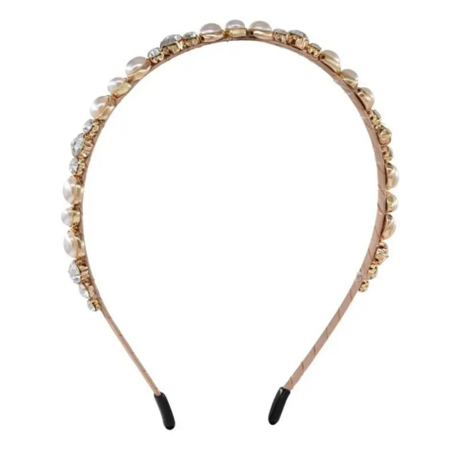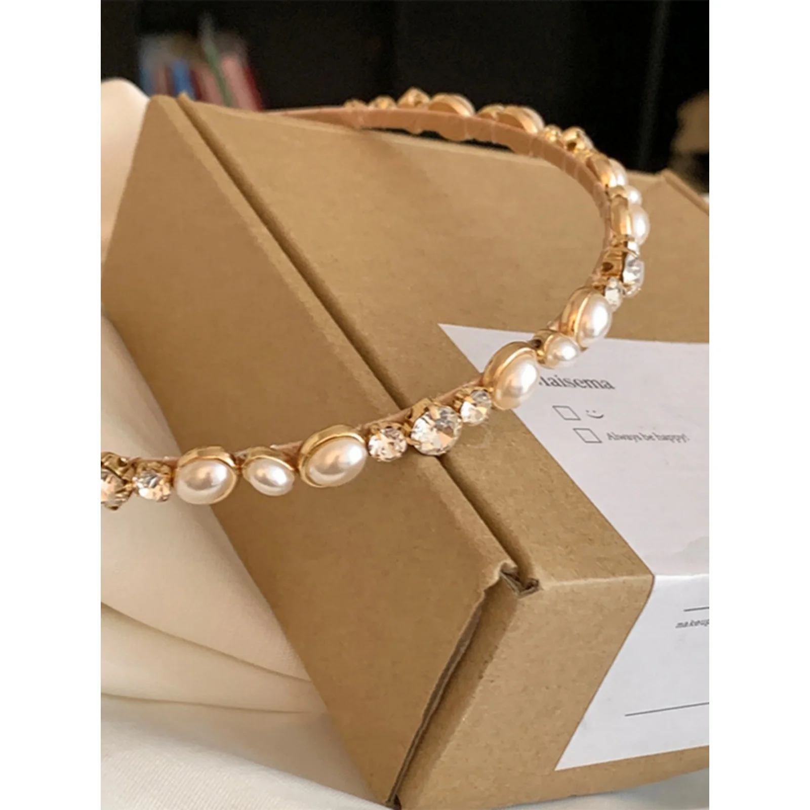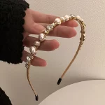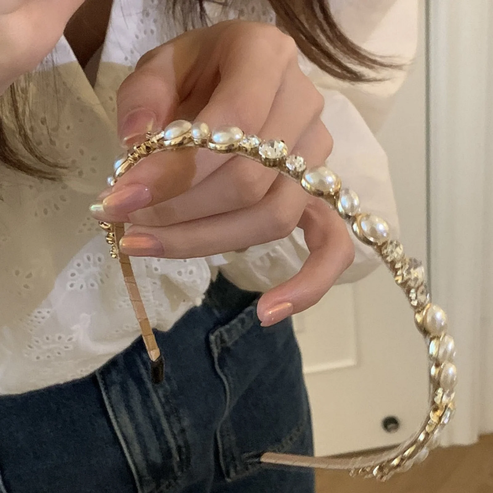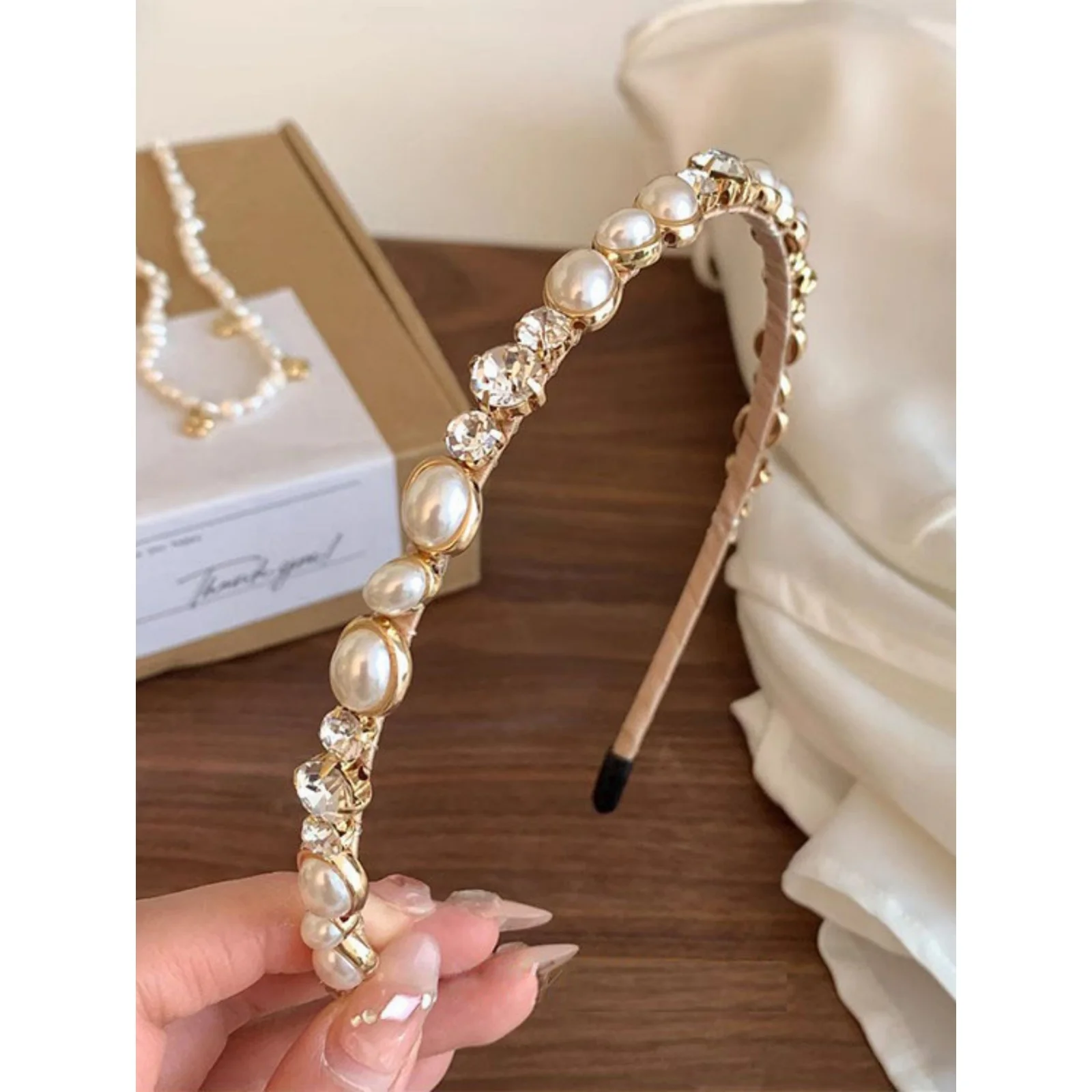 1PC 다이아몬드가 박힌 진주 헤어 후프, 라인스톤 머리띠, 코트 스타일 헤어 액세서리, 불규칙한 모양ABS