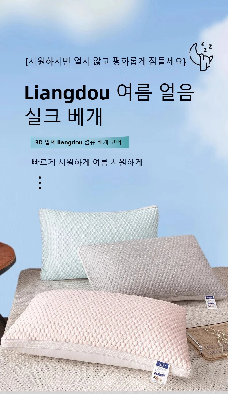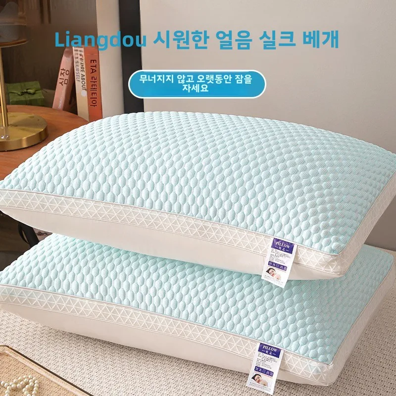 1PC 여름 쿨링 아이스 실크 베개 통기성 메쉬 테두리 3D 인체공학적 경추 지지 베개 코어 가정용 호텔용 2025 신제품