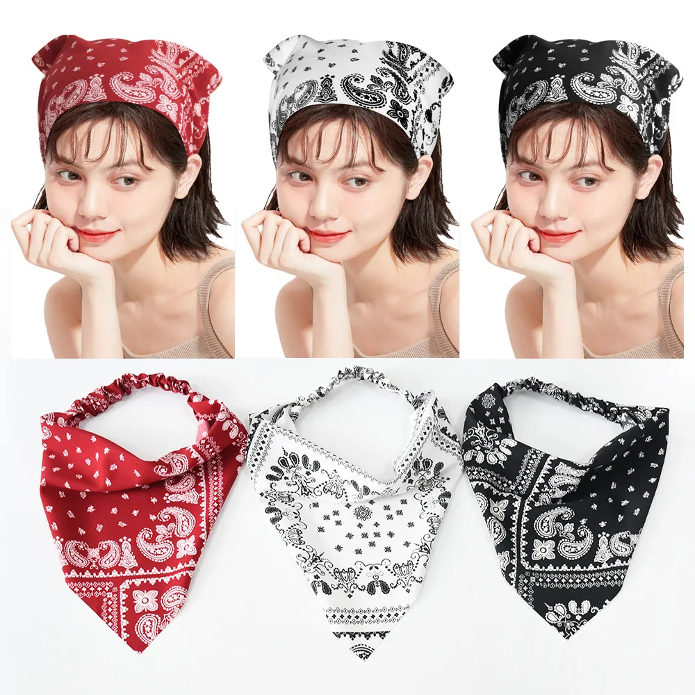 1PC 캐슈 꽃 유행 헤어 밴드 직경 20CM 폴리 에스터 삼각형 수건 탄성 밴드 모든 경기 머리띠 가방 머리