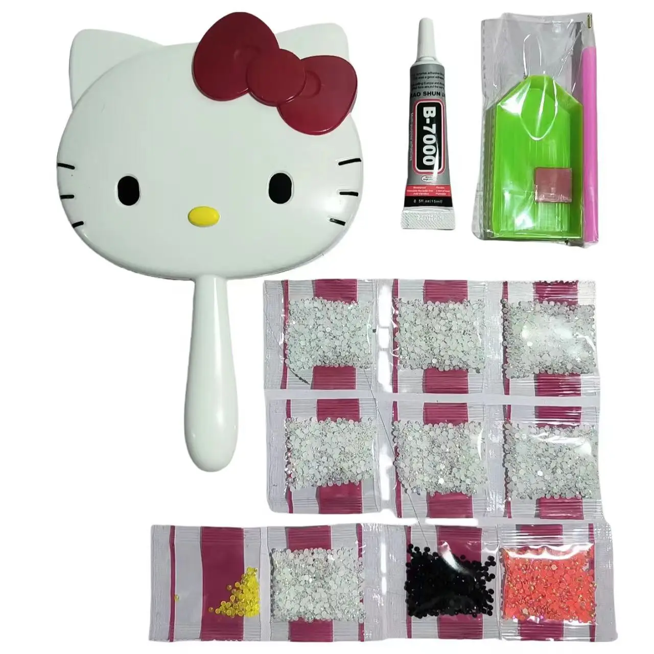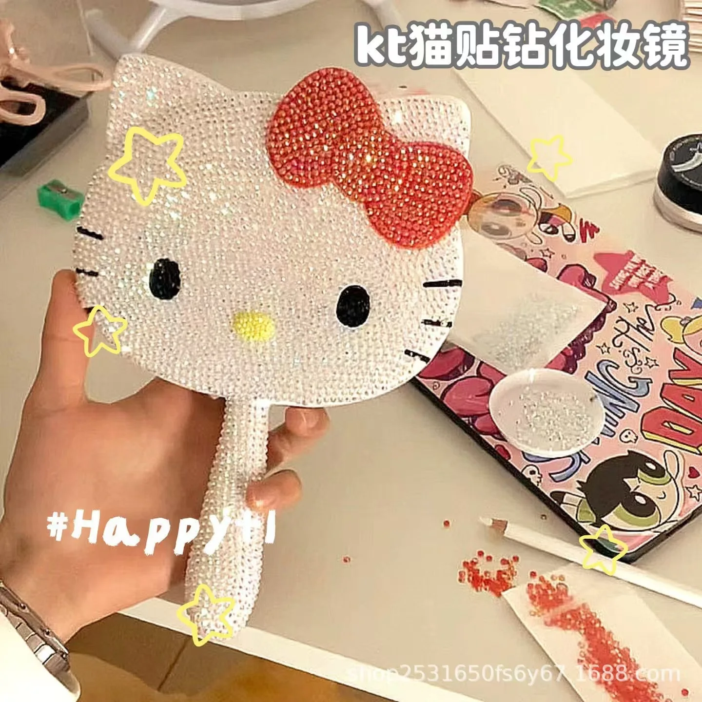 1Pcs 헬로 키티 다이아몬드 페인팅 휴대용 거울 메이크업 휴대용 수공예품 DIY 재료 팩 세트 도트 드릴링 완료