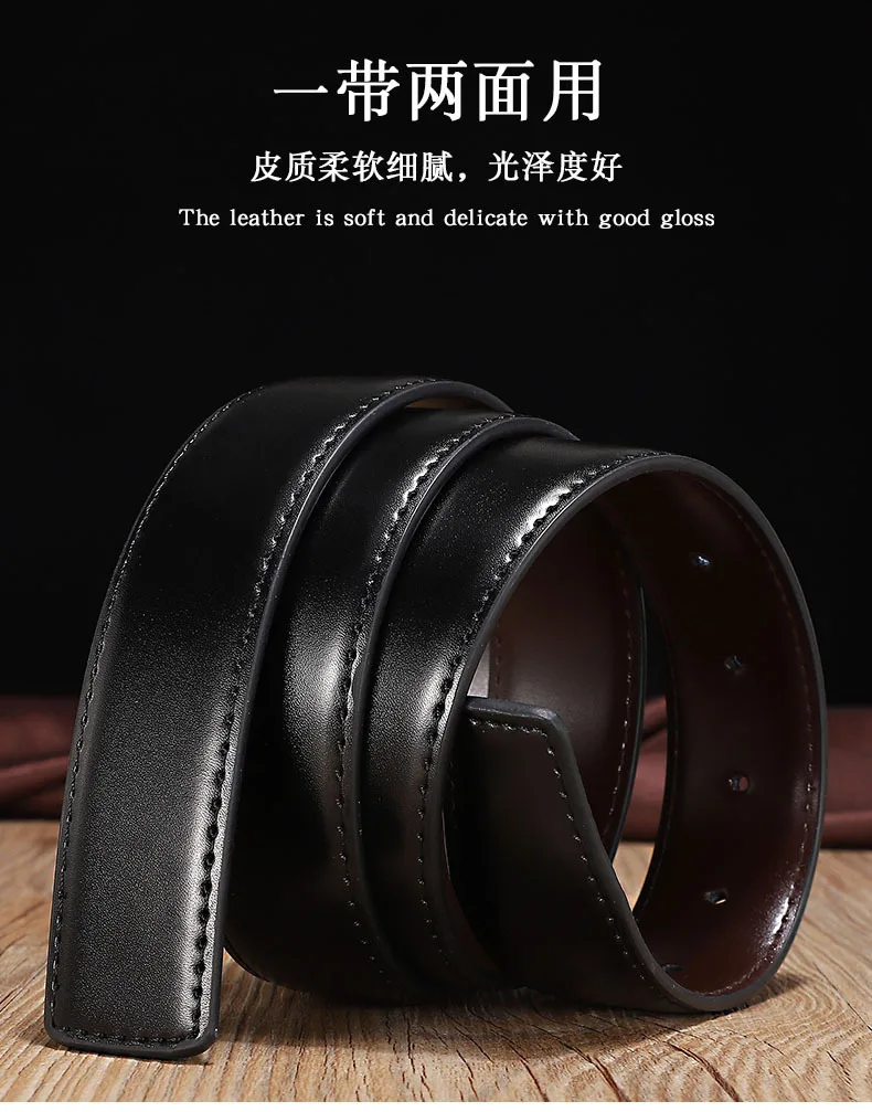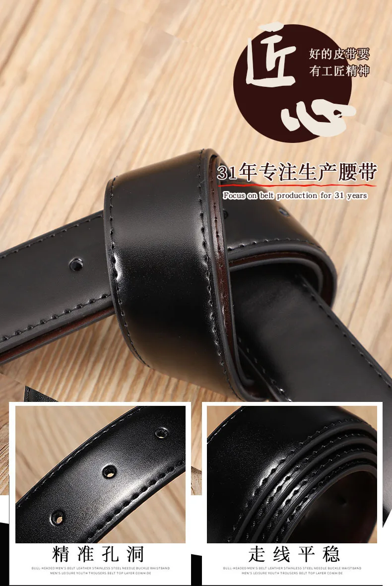1pcs/2.8CM/3.3CM – 남성용 벨트 남성용 비즈니스 벨트 가역 정품 소가죽 벨트 버클 없음 회전 버클