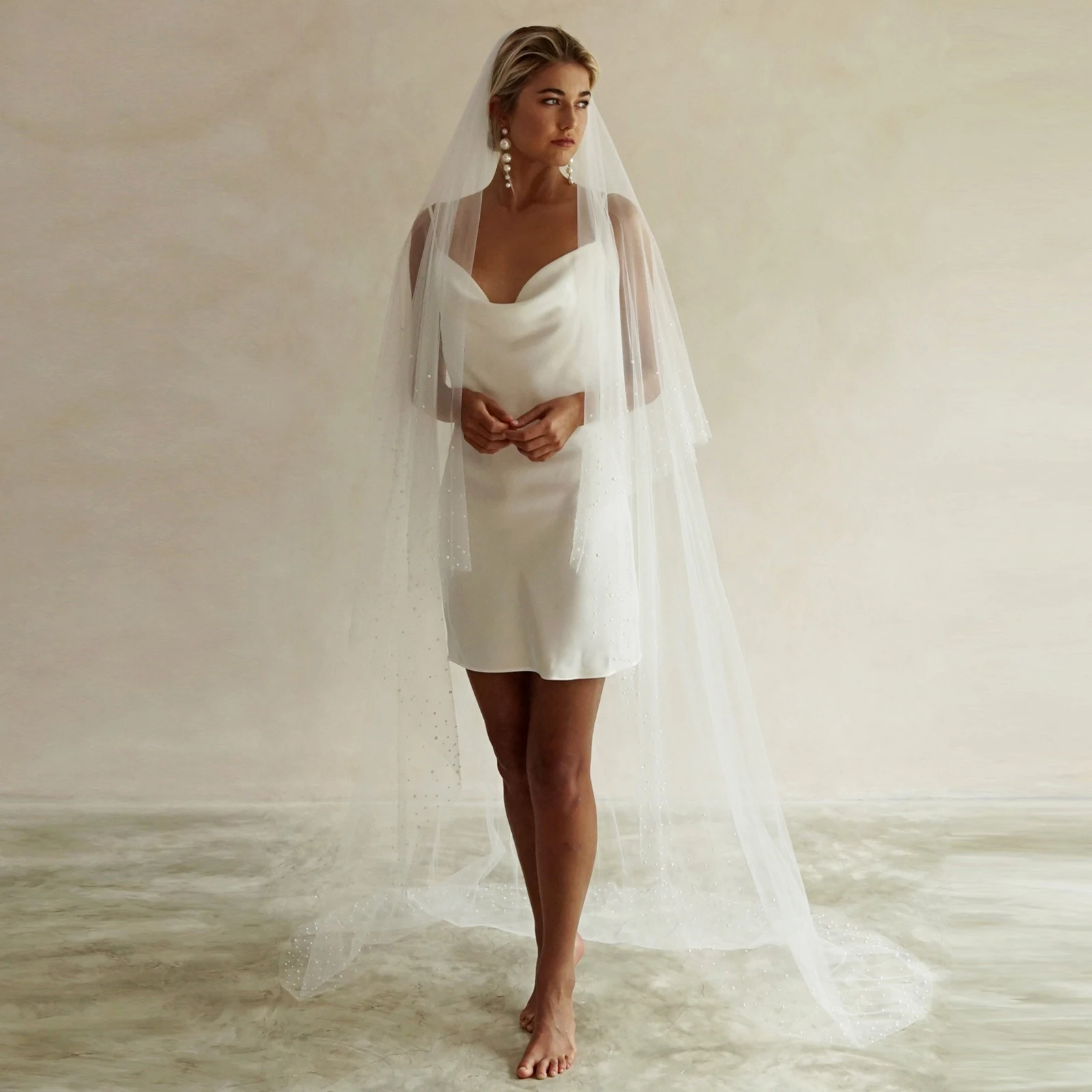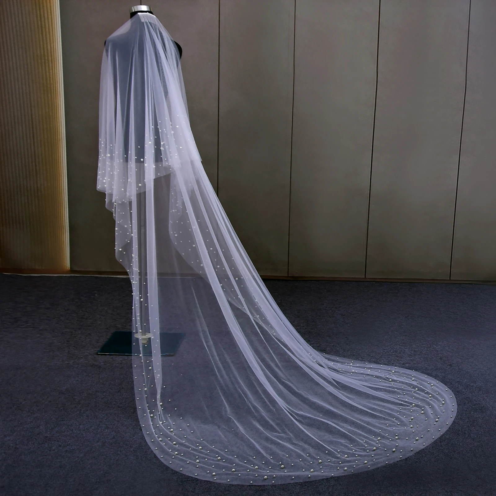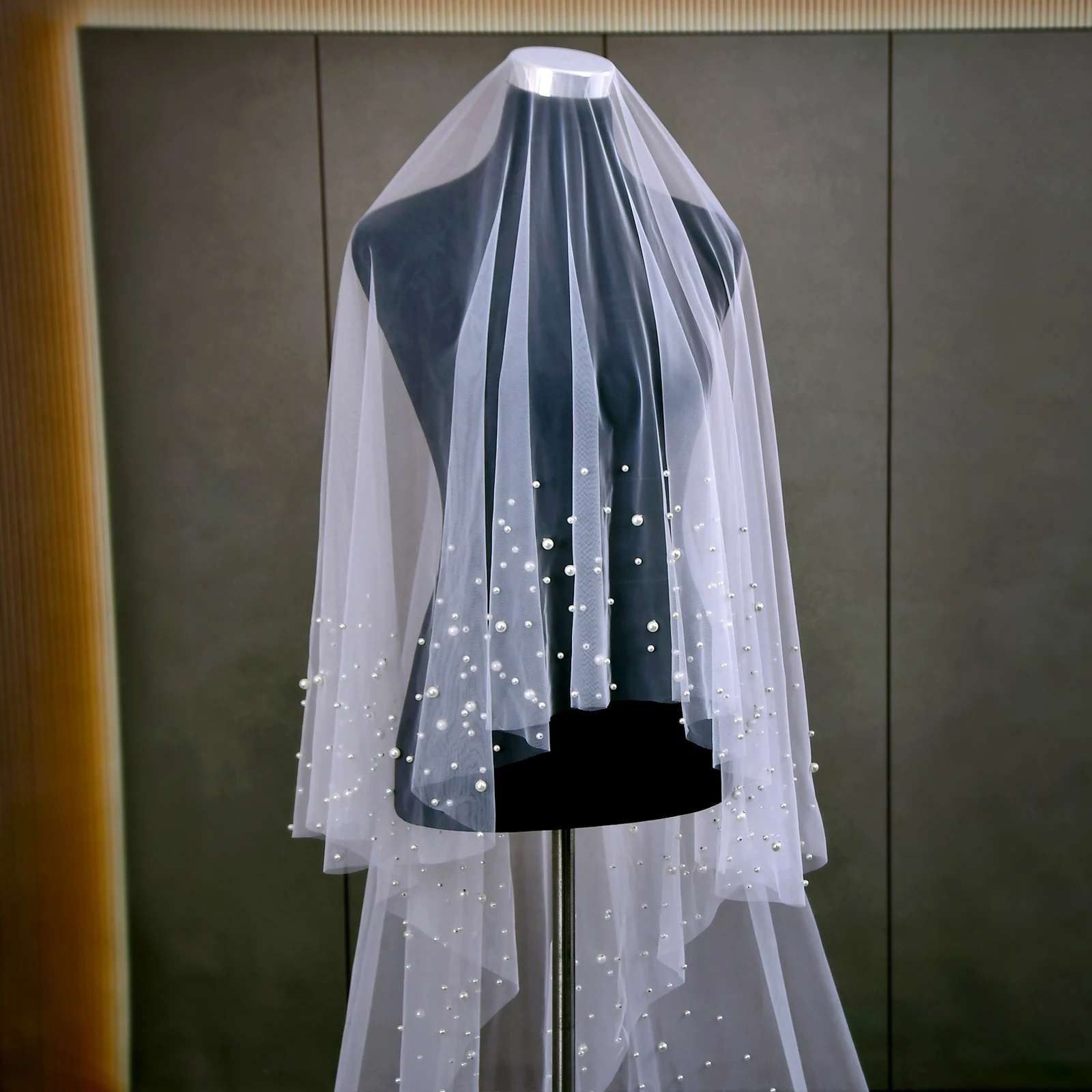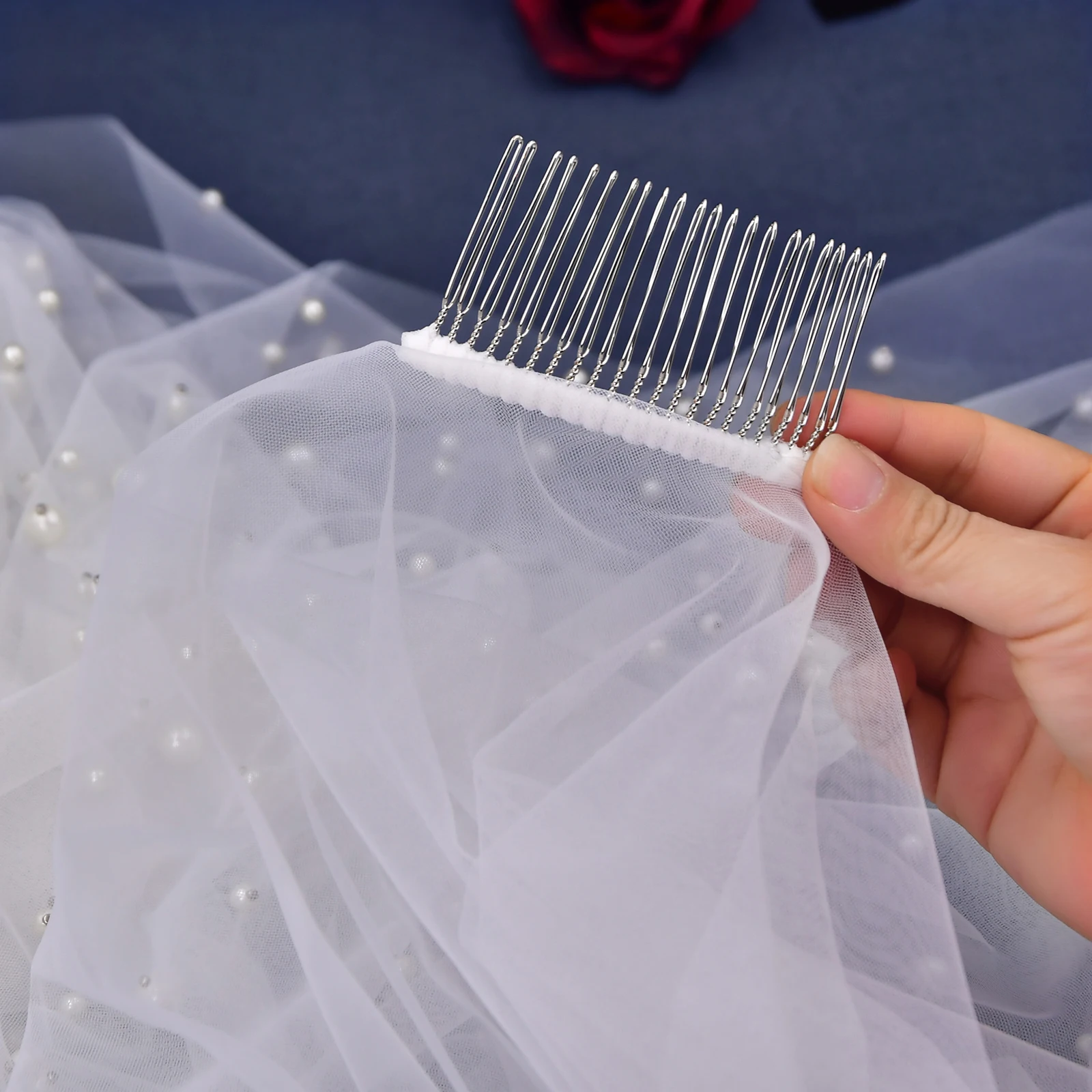 2 계층 웨딩 베일 긴 진주 블러셔 커버 페이스 대성당 소프트 Tulle 웨딩 액세서리 V171와 신부 베일을 페르시