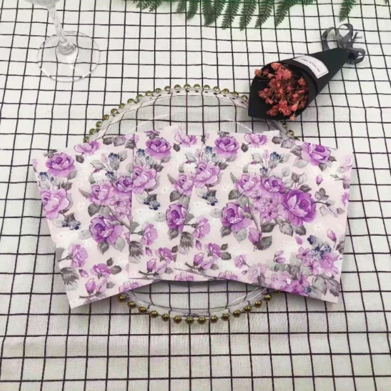 20 개/갑 다채로운 인쇄 냅킨 2 플라이 보라색 꽃 립스틱 종이 서양 레스토랑 웨딩 와인 유리 꽃 종이