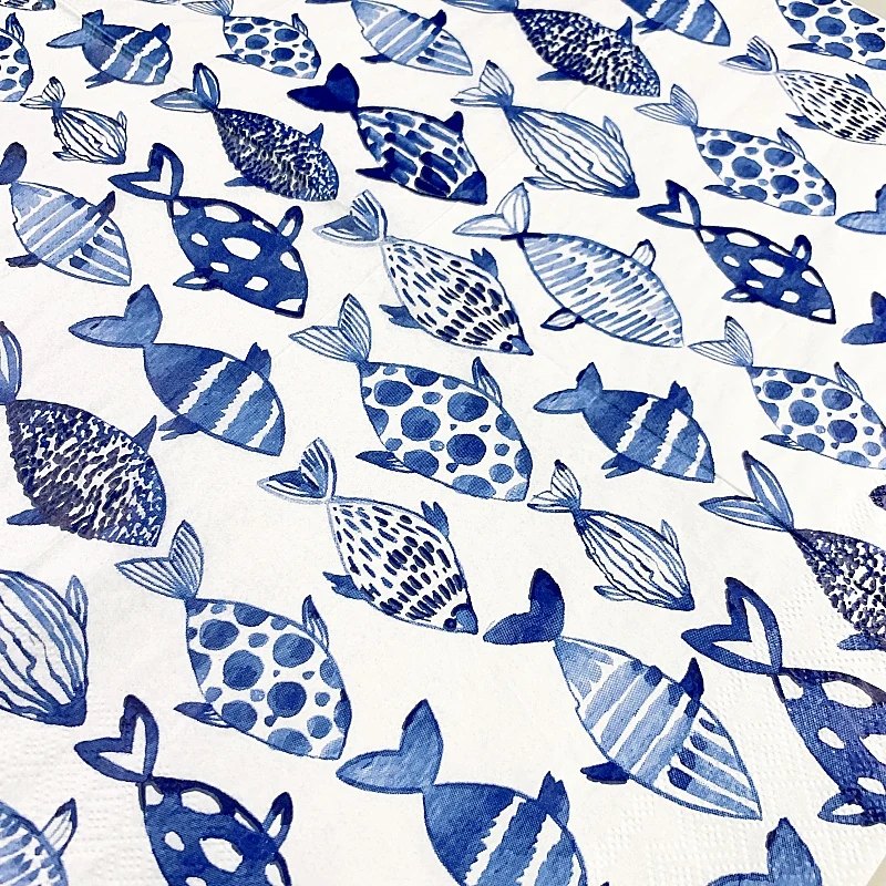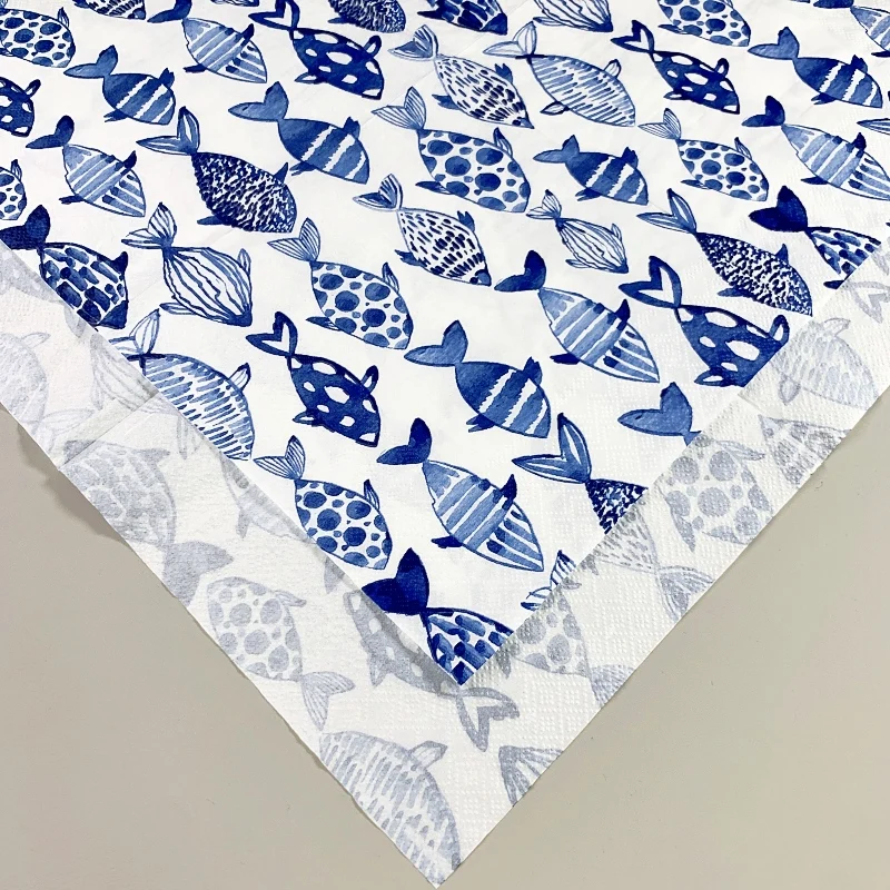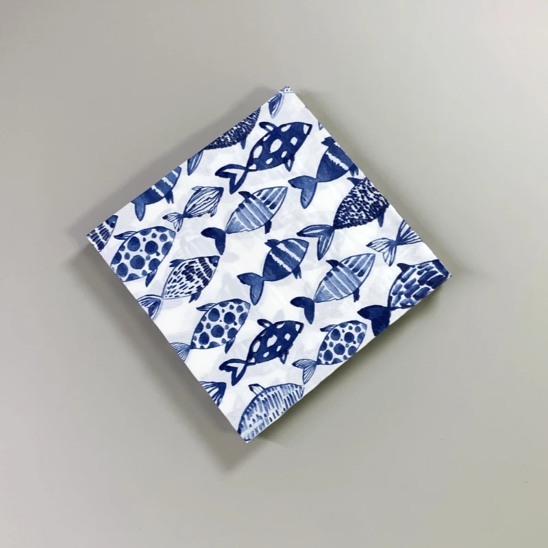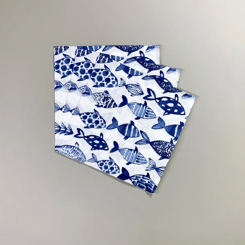 20 개/갑/팩 블루 Finsh Decoupage 종이 꽃 냅킨 파란색과 흰색 도자기 Tissu 웨딩 파티 Serviettes 홈 Deccor