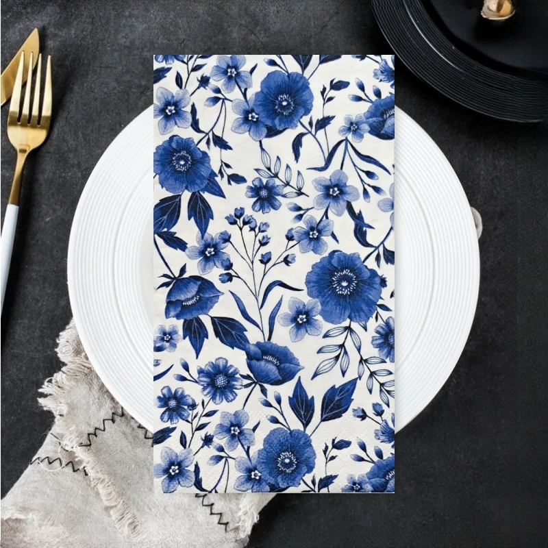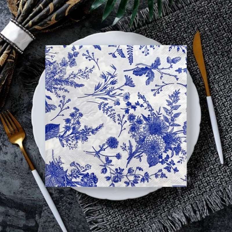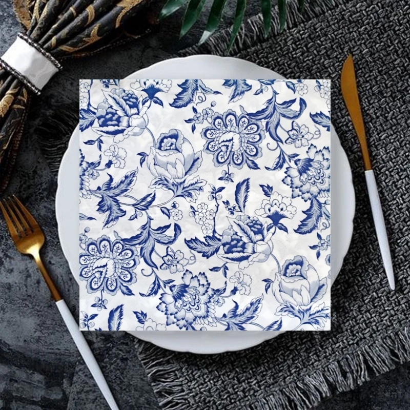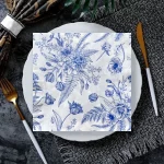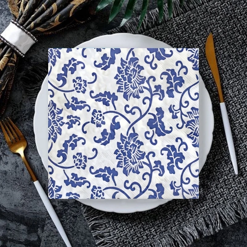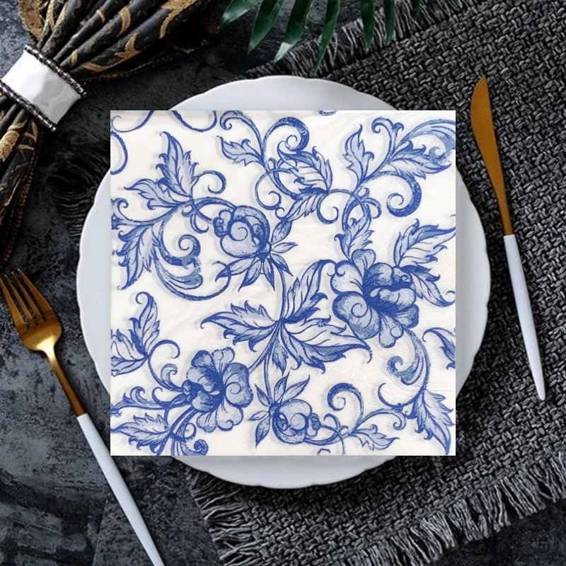 20/8Pcs 빈티지 파란색과 흰색 도자기 Decoupage 종이 냅킨 파티 결혼식을위한 꽃 종이 조직 크리스마스 용품 새로운 2025