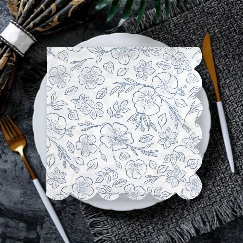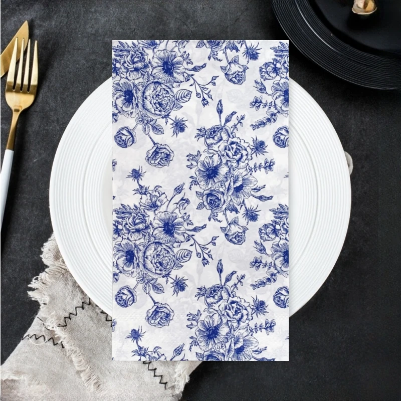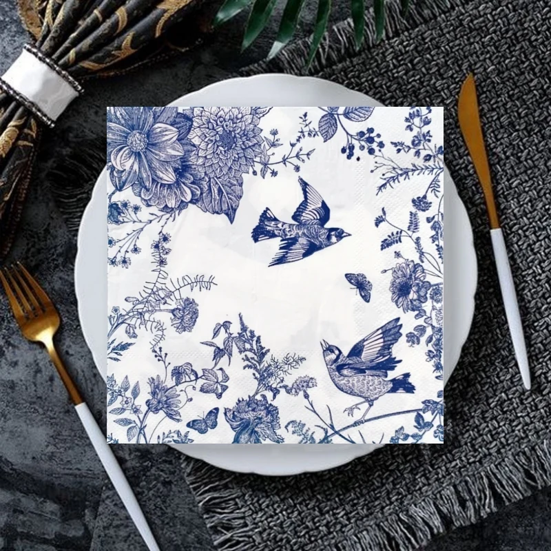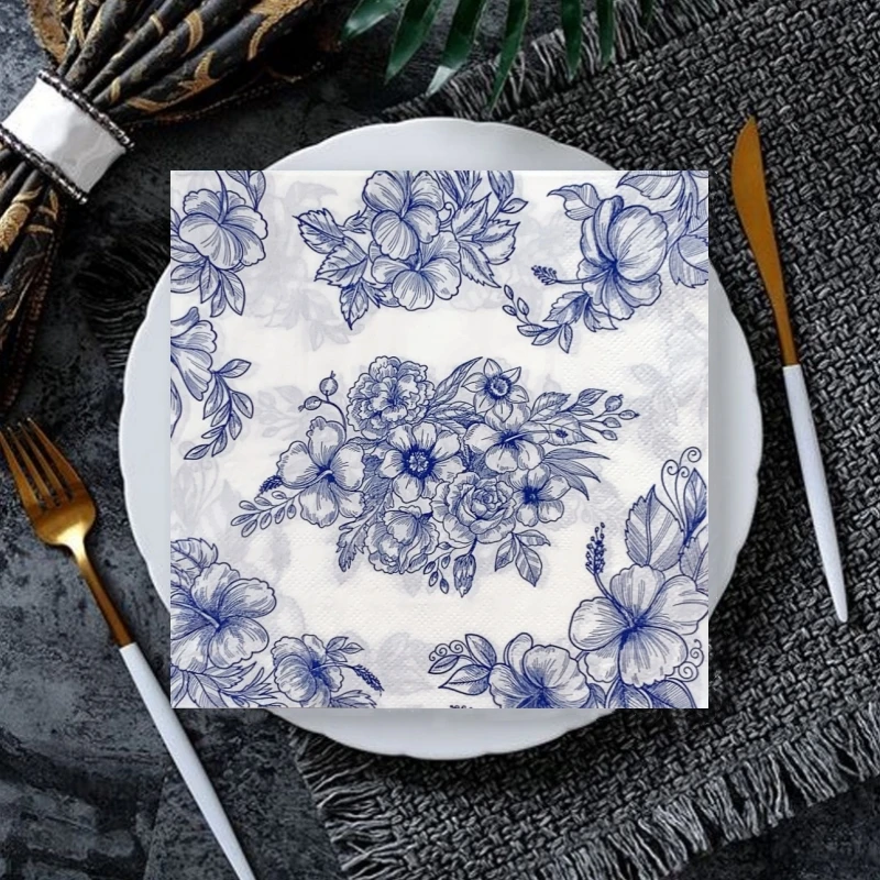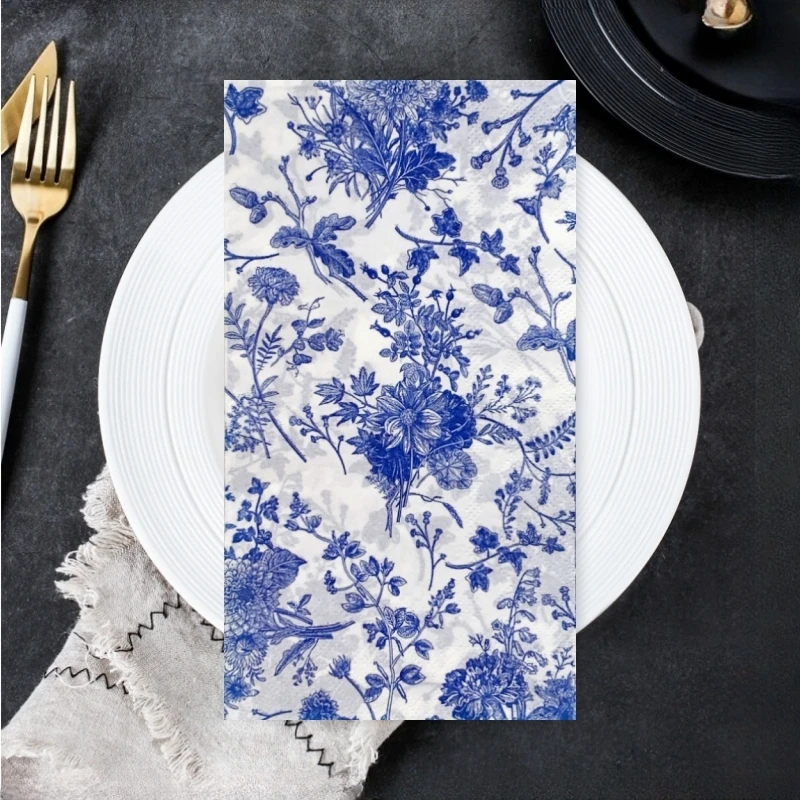 20/8Pcs 빈티지 파란색과 흰색 도자기 Decoupage 종이 냅킨 파티 결혼식을위한 꽃 종이 조직 크리스마스 용품 새로운 2025