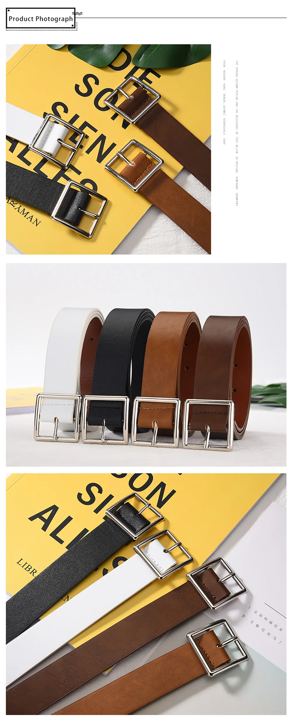 2023 여성 벨트 부드러운 Pu 가죽 벨트 스퀘어 버클 핀 버클 청바지 블랙 벨트 세련된 럭셔리 브랜드 멋진 빈티지 스트랩 여성