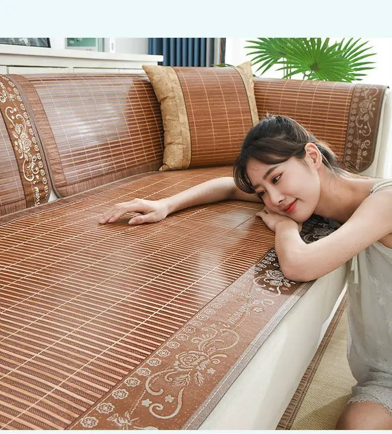 2025년 여름 신상 미끄럼 방지 대나무 매트 소파 쿠션 시원한 촉감 시트 패드 커버 원단 부드러운 촉감 소파 시트 패드