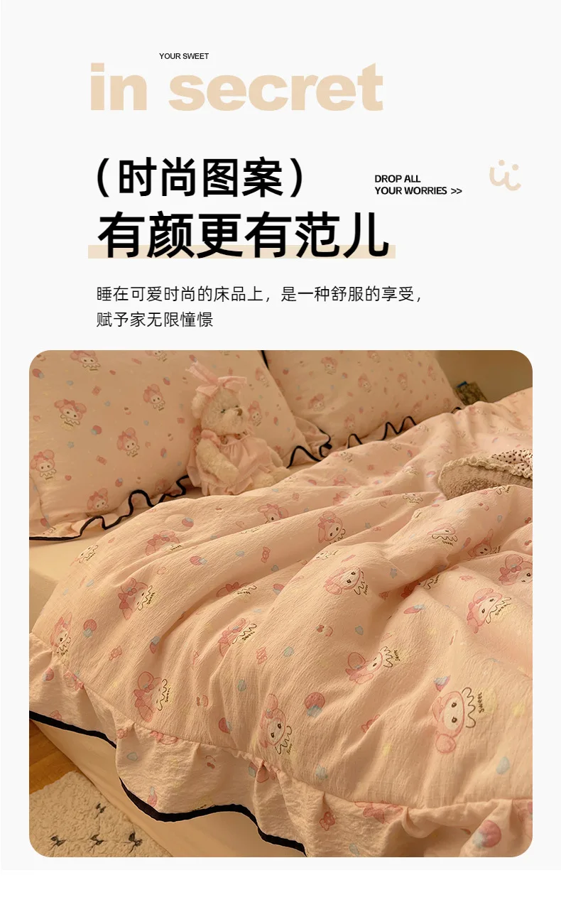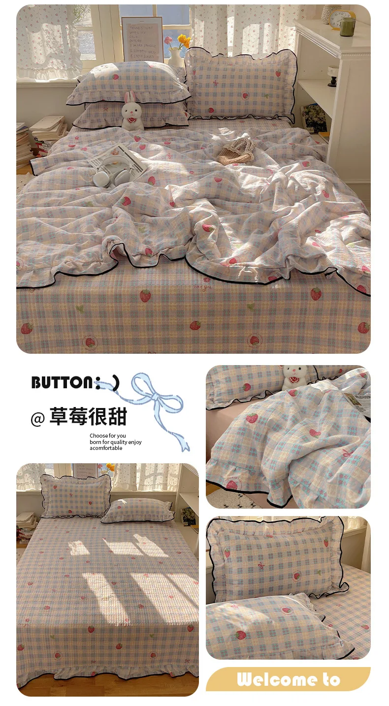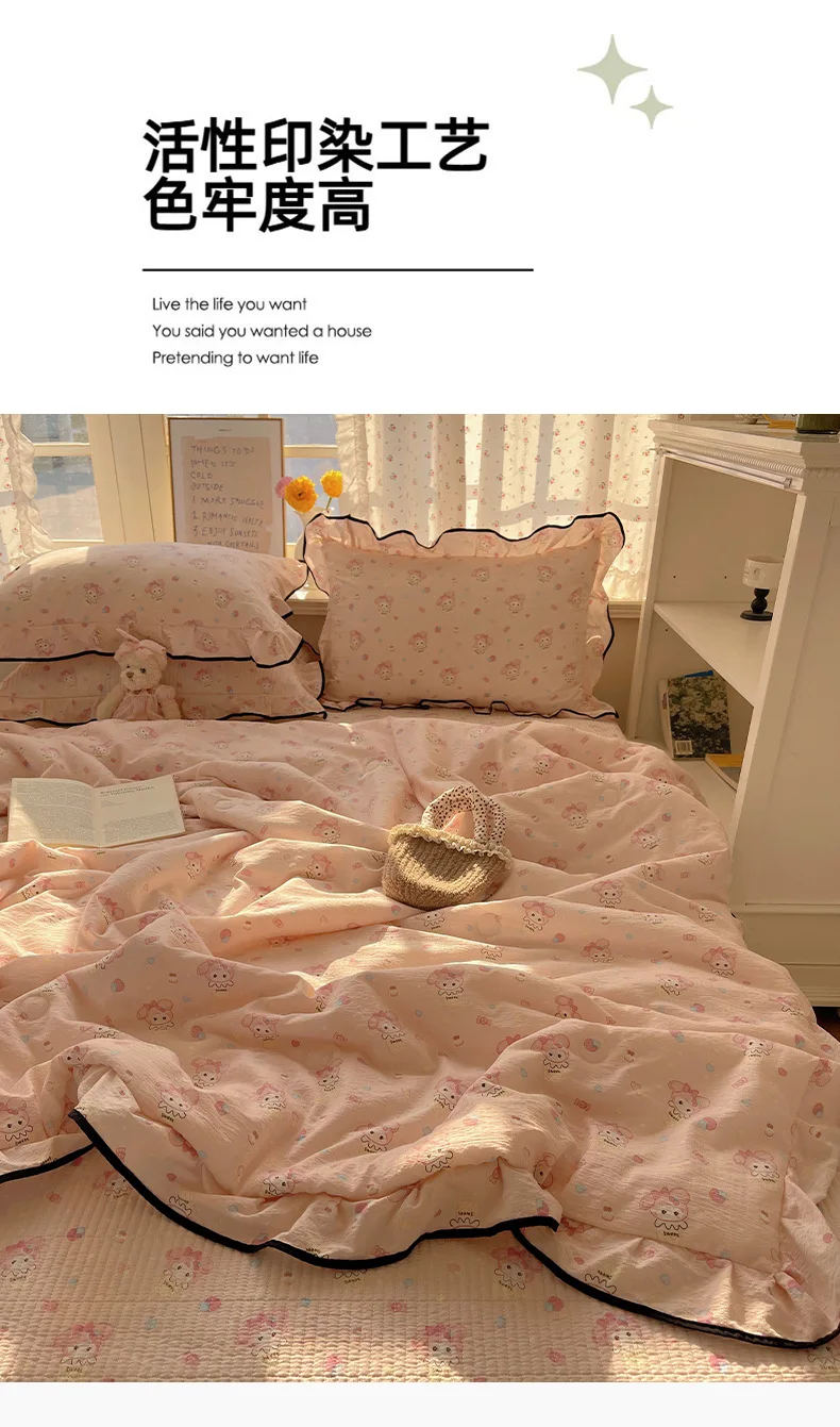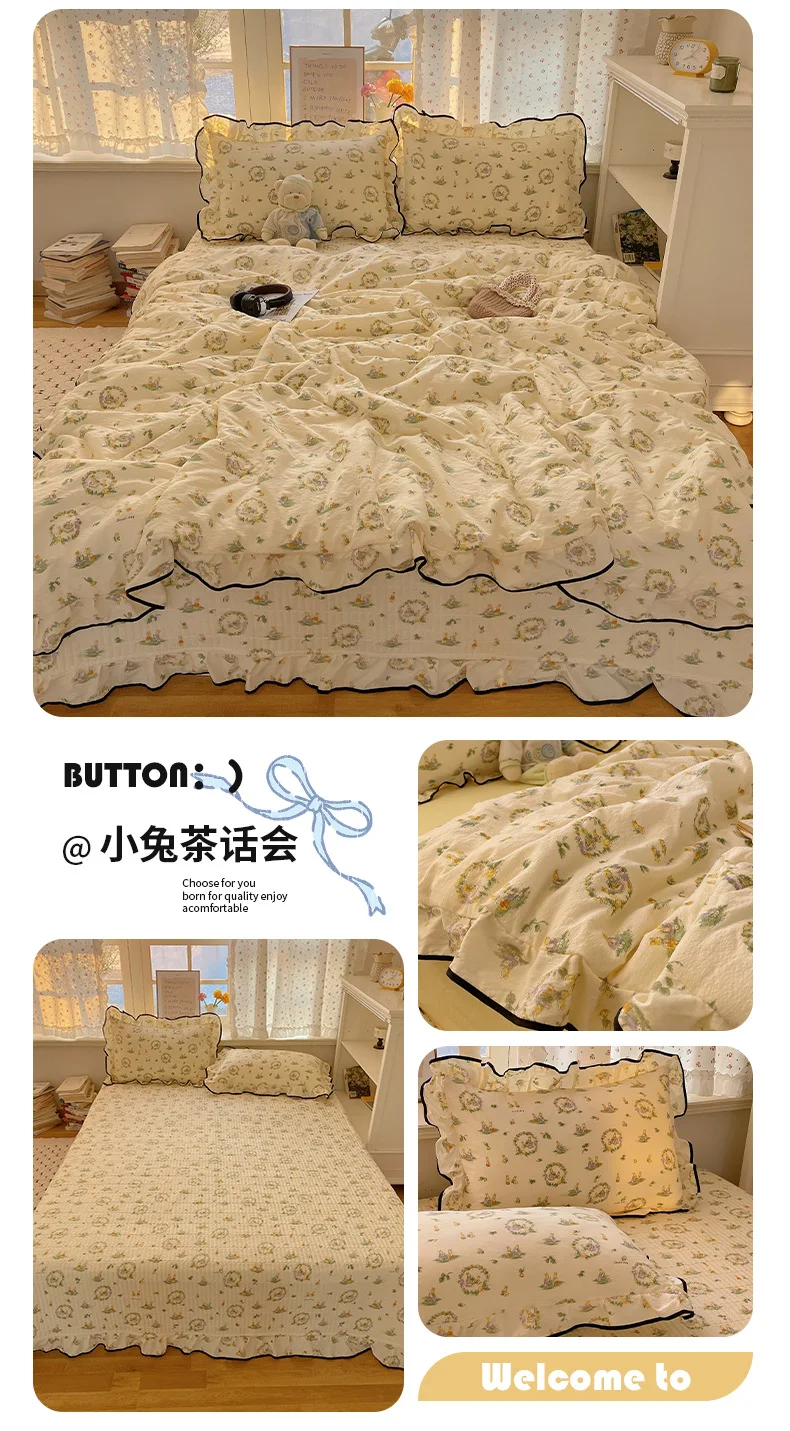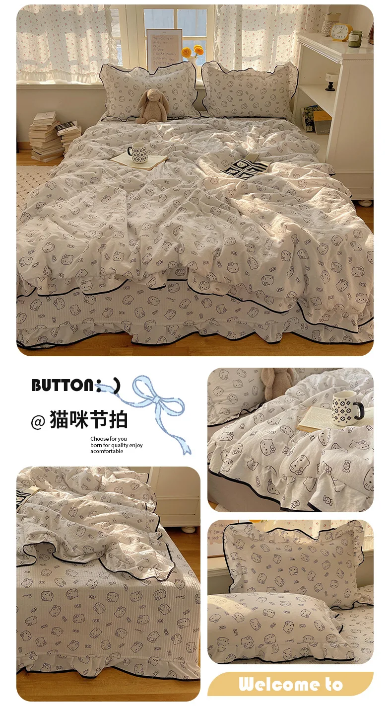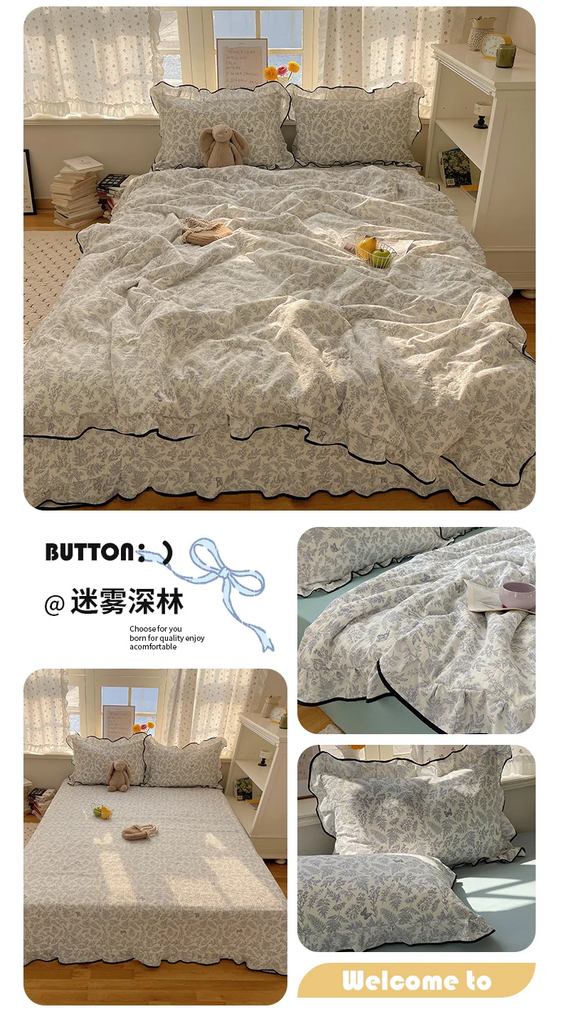 2025 뉴 클라우드 카폭 니트 코튼 시트 여름 이불 프린팅 샤량 이불 에어컨 이불 4종 세트