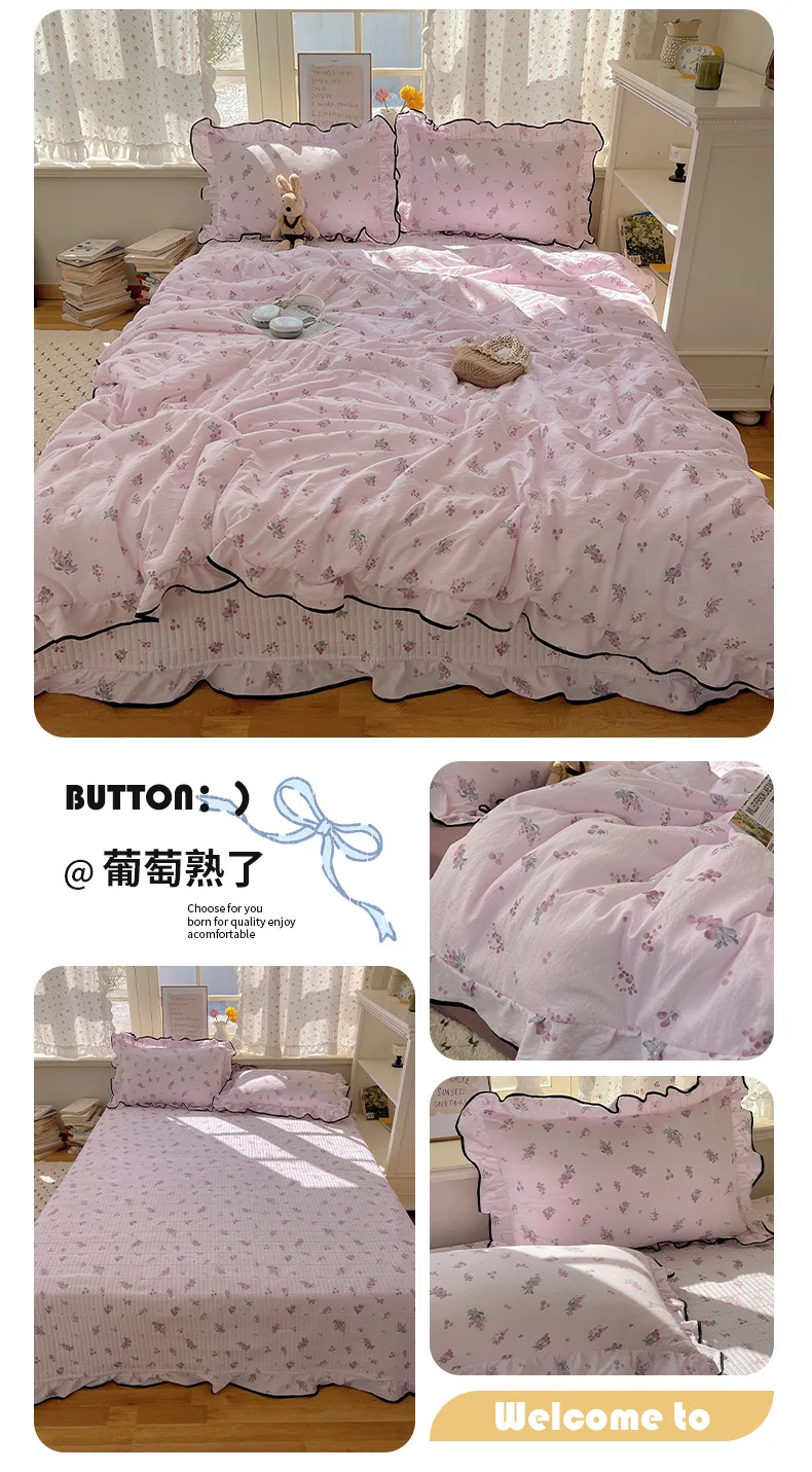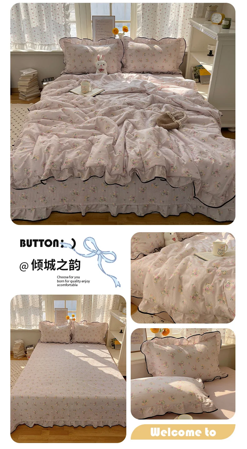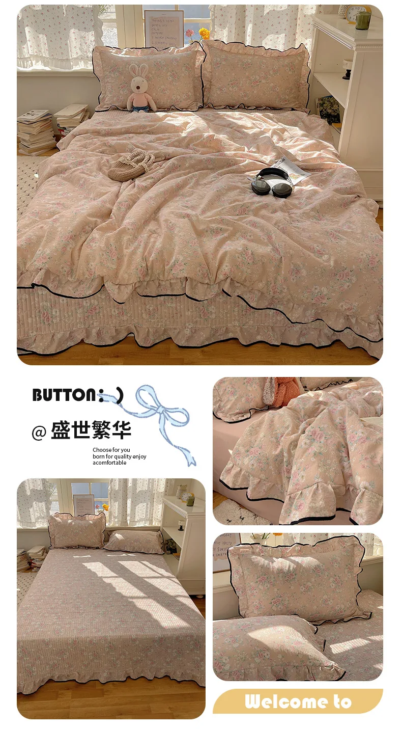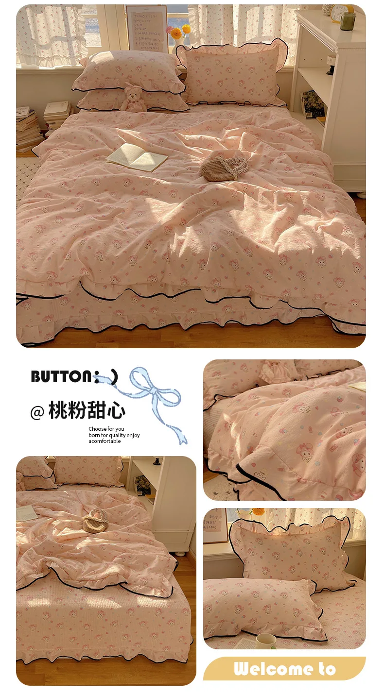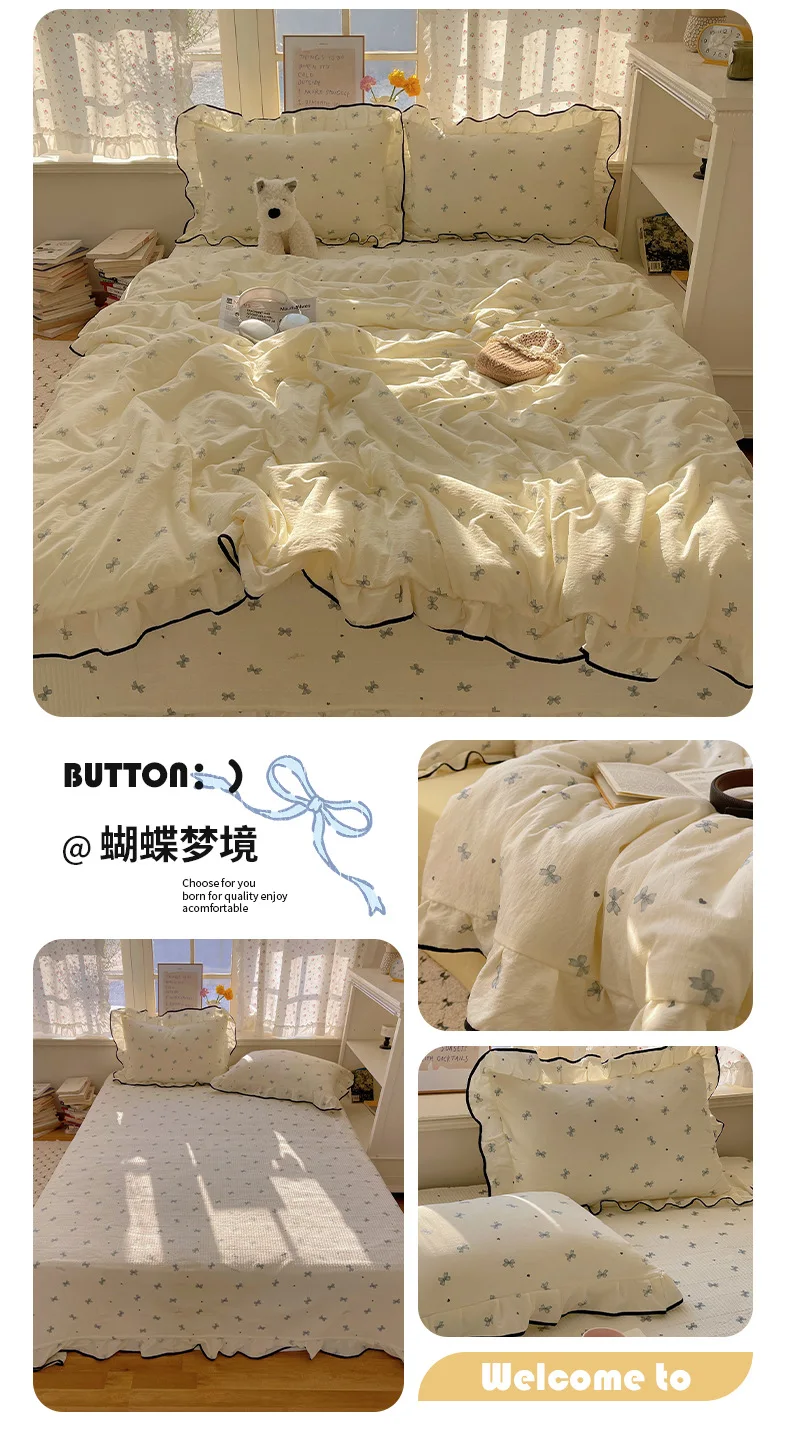 2025 뉴 클라우드 카폭 니트 코튼 시트 여름 이불 프린팅 샤량 이불 에어컨 이불 4종 세트