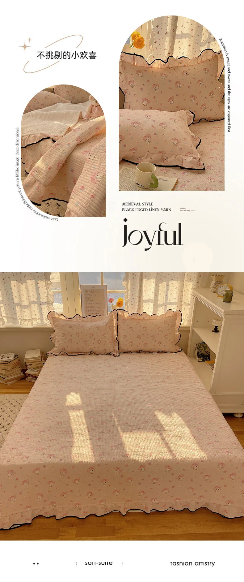 1Pc 한국어 공주 프릴 꽃 자수 여름 이불 침대 스프레드 침대 이불 에어컨 담요 침구 세트