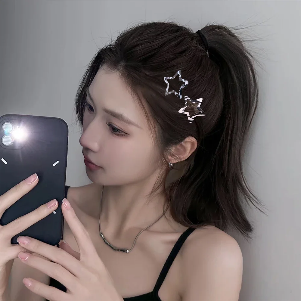 2025 여성용 레트로 레오파드 프린트 펜타그램 BB 헤어 클립 지브라 앞머리 프린트 물방울 모양 속이 빈 헤어핀 측면 프린트 헤어 클립