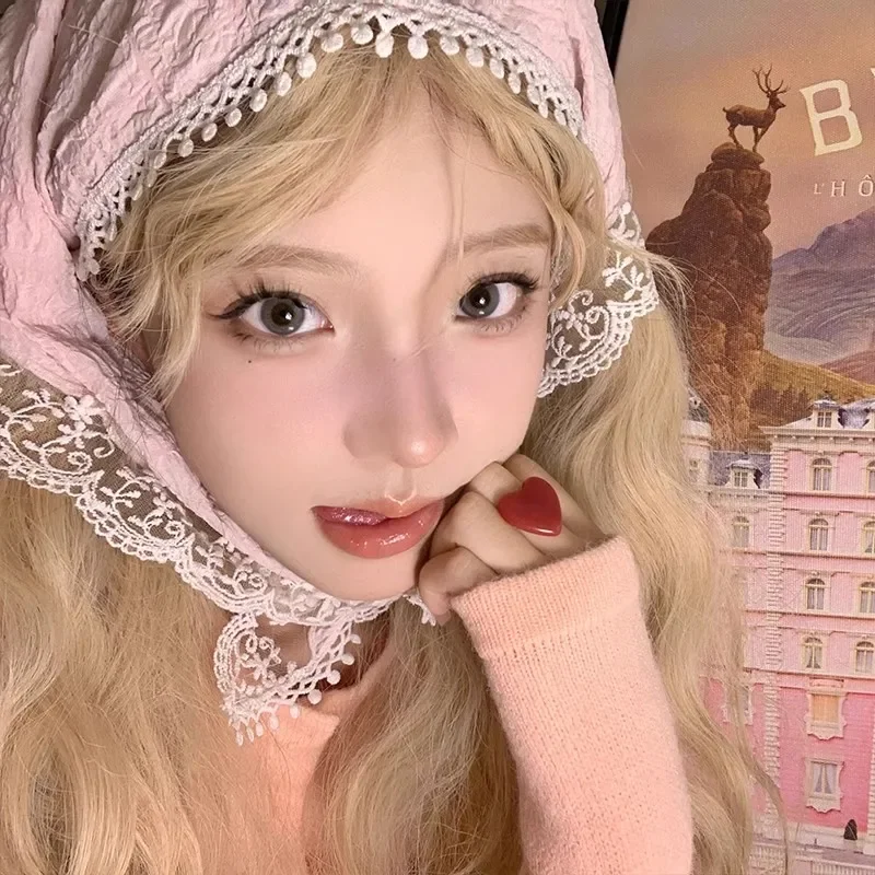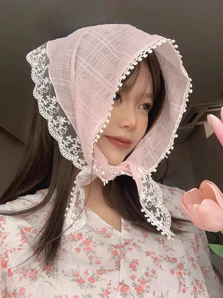 2025 프랑스 컨트리 스타일 레이스 메쉬 삼각 스카프 봄 여름 플로럴 헤어 스카프 우아한 헤드랩 보헤미안 헤어 액세서리