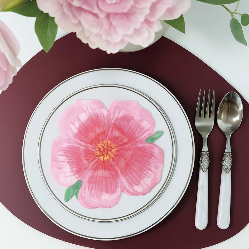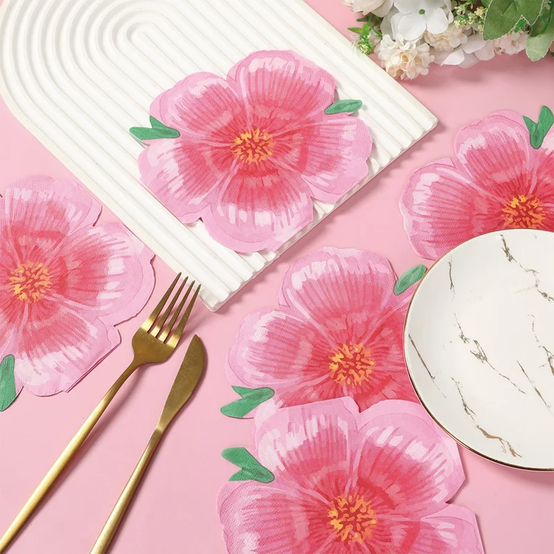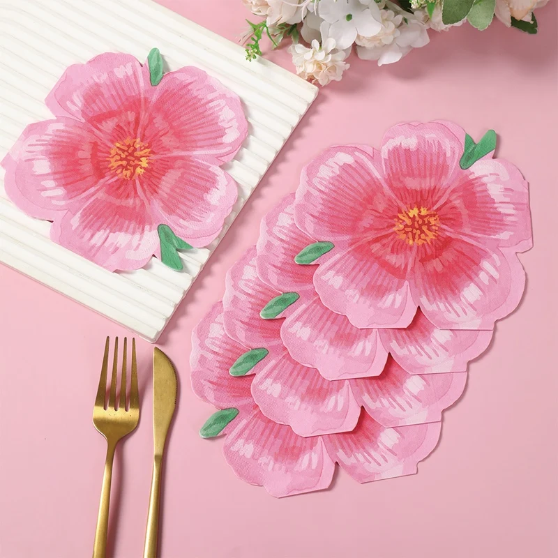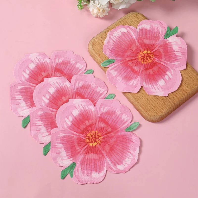 20-60pcs 핑크 꽃 종이 냅킨 일회용 장식 칵테일 냅킨 베이비 샤워 웨딩 생일 파티 장식에 사용