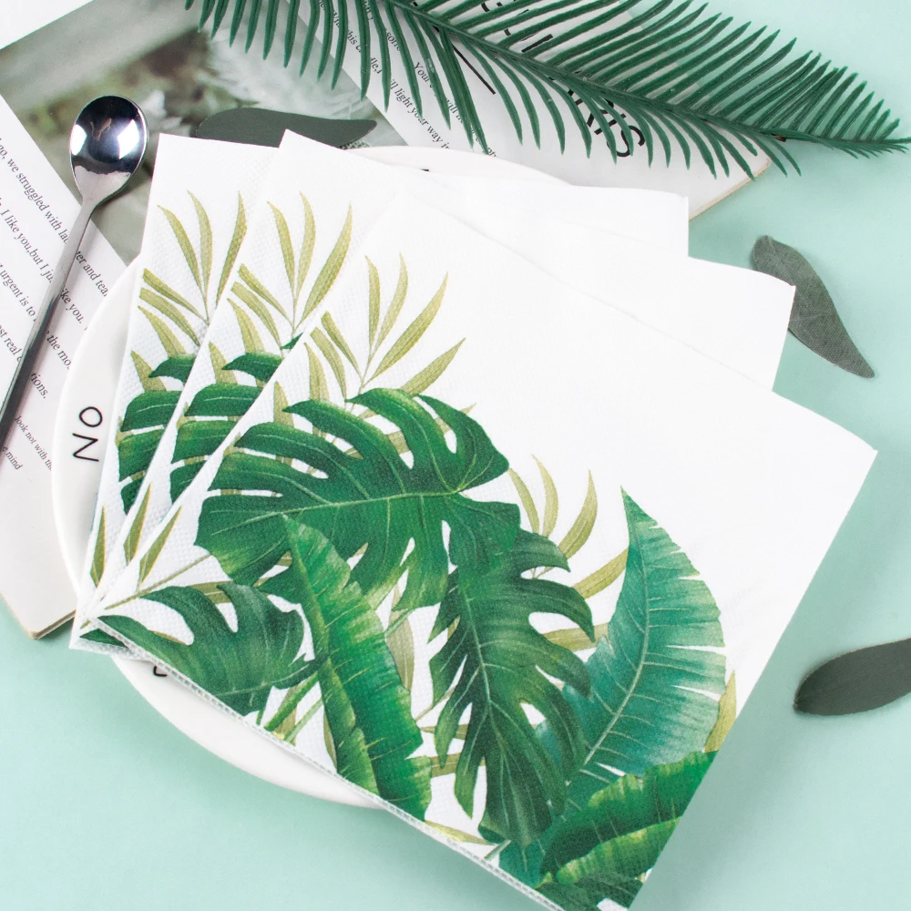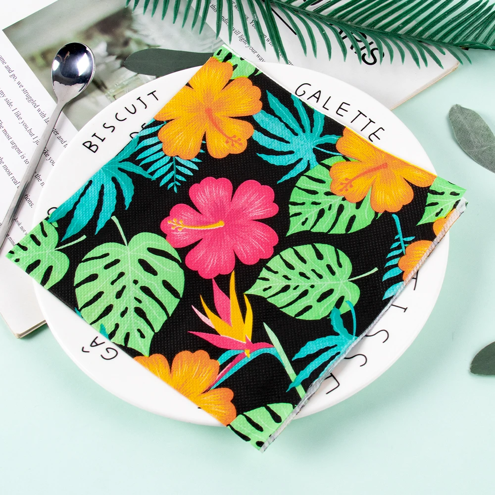 20pcs 하와이 파티 팜 잎 히비스커스 꽃 열대 여름 해변 풀 파티 테이블 장식에 대 한 일회용 종이 냅킨