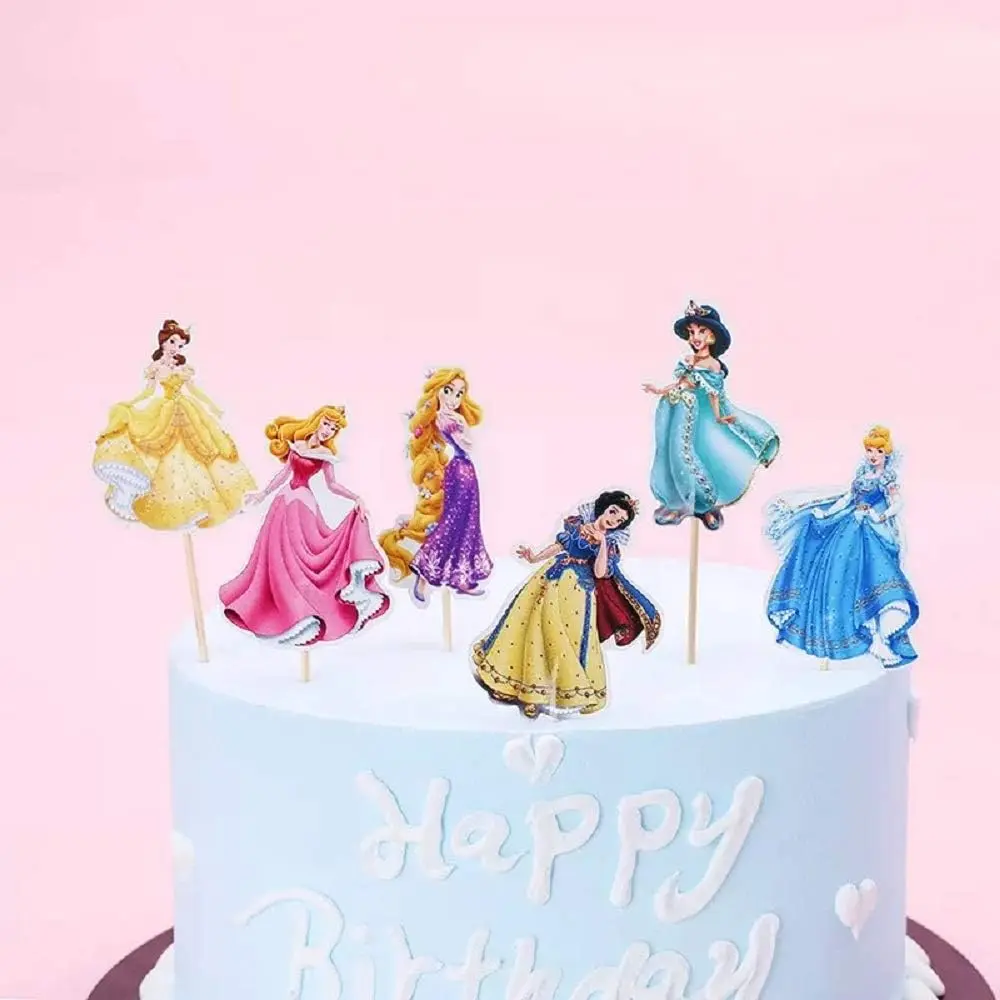 24pc 디즈니 공주 케이크 토퍼 소녀는 아이들을위한 파티 케이크 장식을 선호합니다 생일 축하 파티 케이크 용품 공주 컵케익