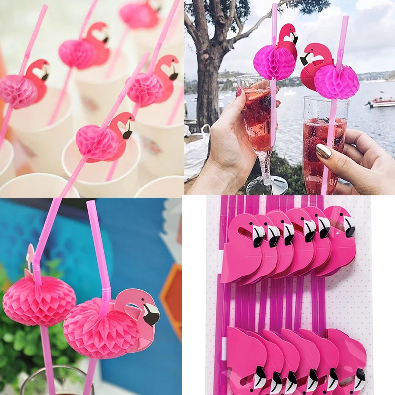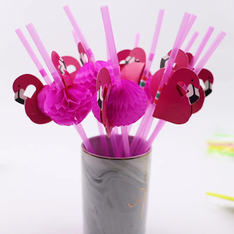 25pcs 3D 플라밍고 파인애플 우산 벌집 짚 하와이 테마 여름 풀 파티 웨딩 용품 생일 파티 장식