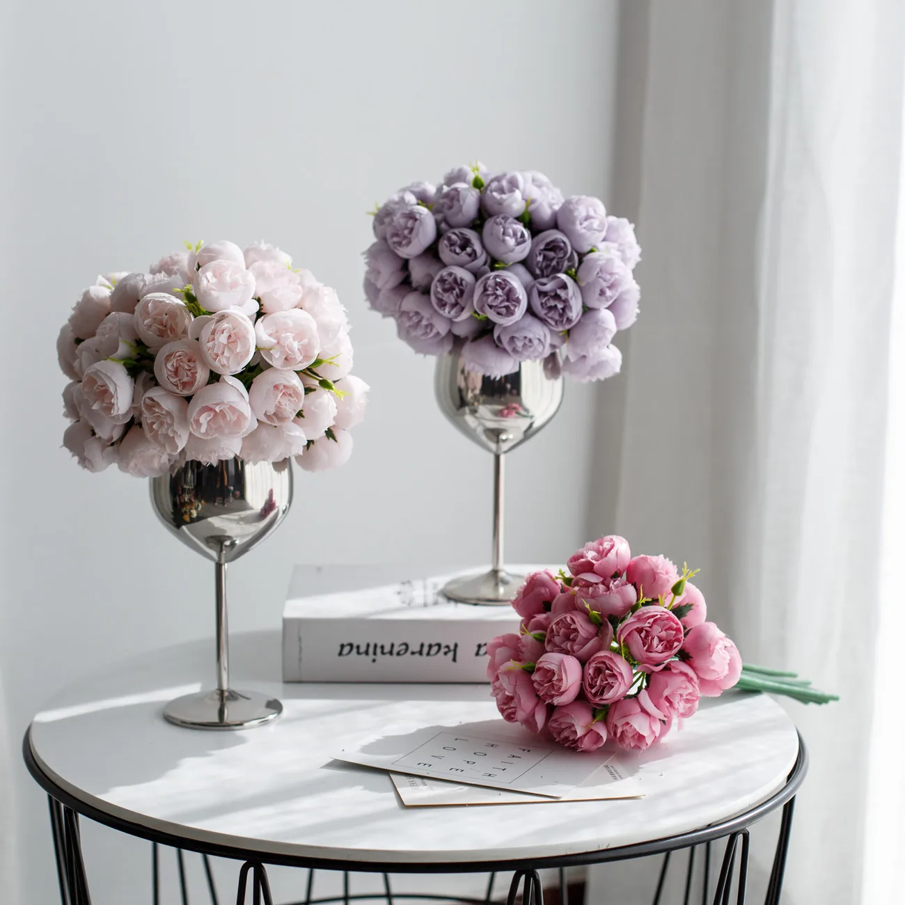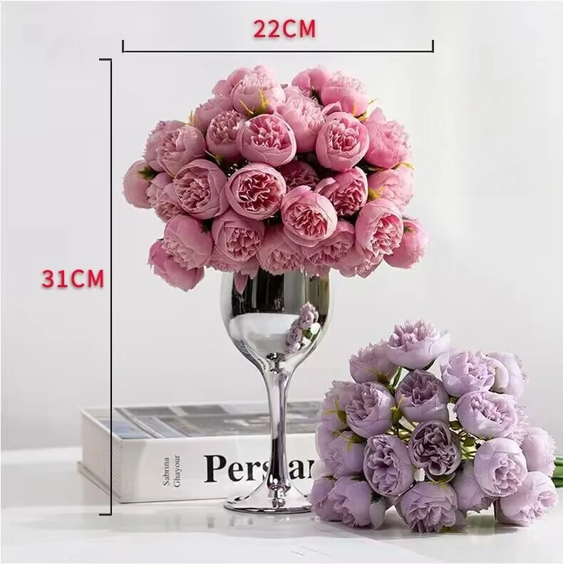 27 헤드 인공 실크 장미 번들 경량 럭셔리 장미 꽃다발 홈 사진 소품 웨딩 장식