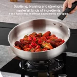 다양한 재료 마스터하기: 튀김부터 조림까지, 이 스테인리스 스틸 평면 바닥 팬을 사용하면 자신감과 정밀도를 가지고 다양한 요리를 쉽게 요리할 수 있습니다.