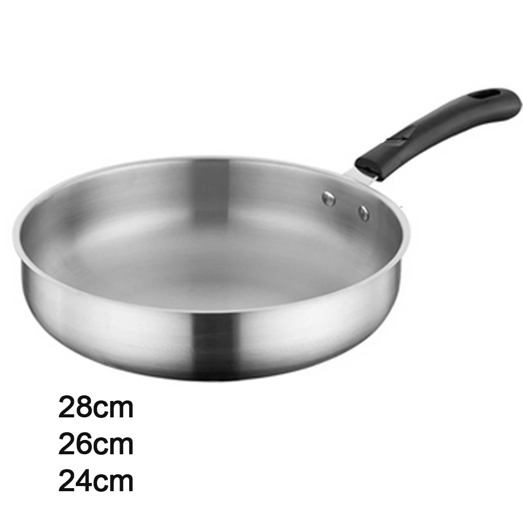 28/26/24cm 스테인레스 스틸 프라이팬 Wok 비 스틱 팬 홈 두꺼운 요리 냄비 가스 스토브 유도 밥솥 범용 내구성