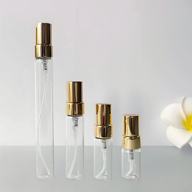 30/50/100pcs 2ml/3ml/5ml/10ml 유리 리필 형 향수병 빈 스프레이 병 분무기 향수병 금속 스프레이 병