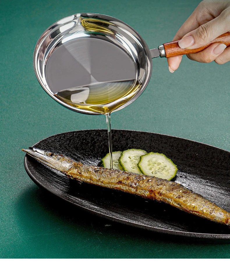 나무 손잡이가 쏟아진 스테인레스 스틸 오일 포트 12cml/16cm 미니 수프 우유 포트 화상 방지 주방 도구 요리 액세서리