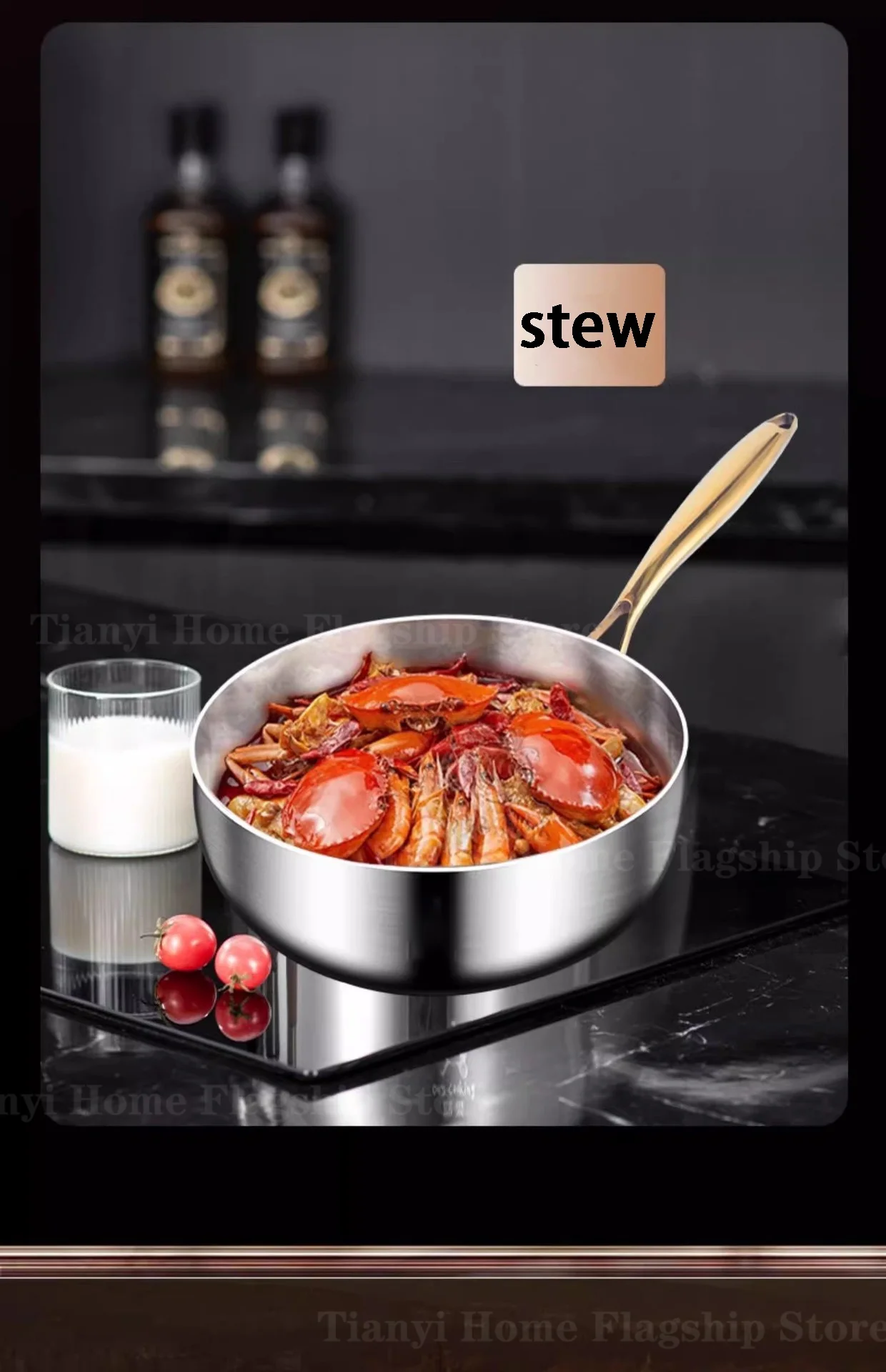 - Stainless steel deep frying pan: Stainless steel deep-wok