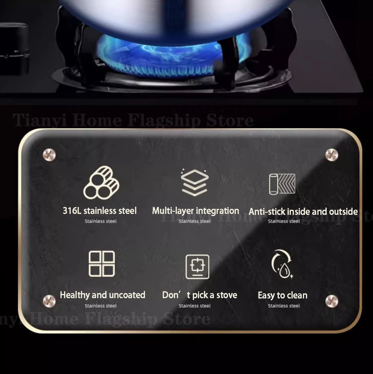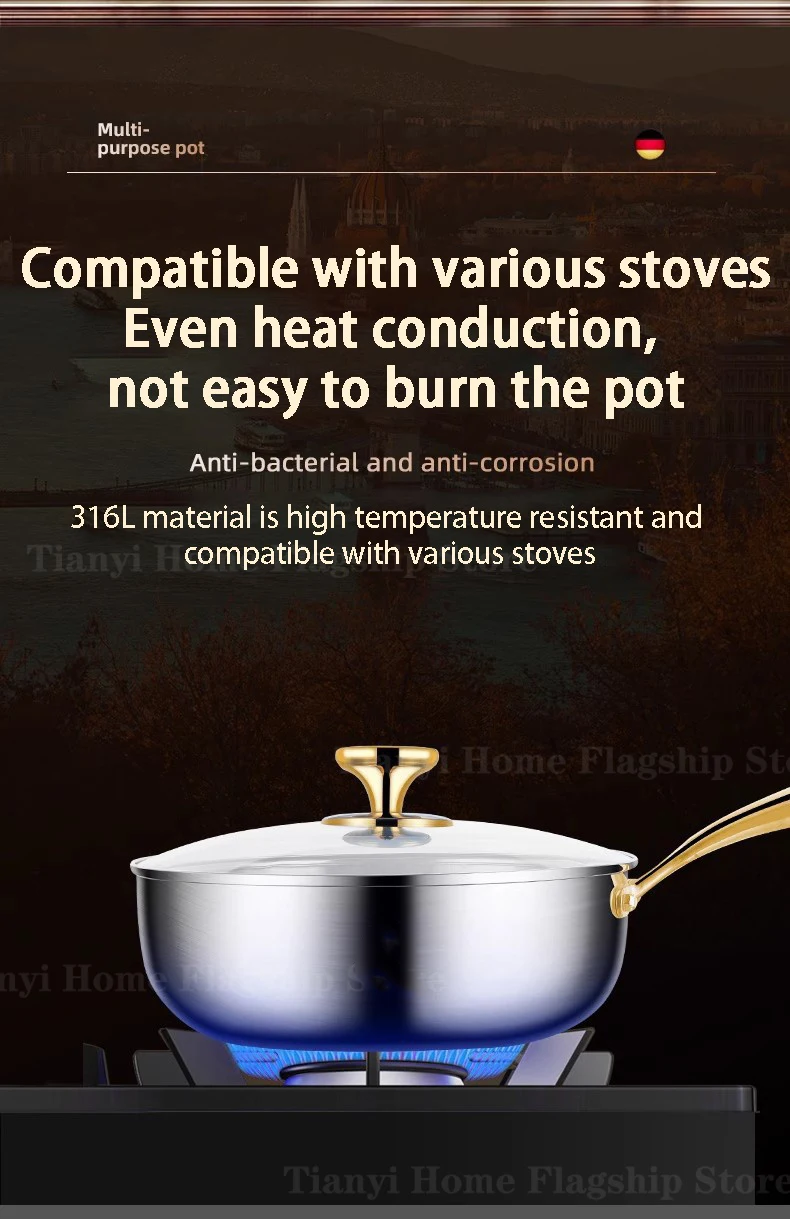 316 스테인리스 스틸 깊은 프라이팬 논스틱 웍 가정용 스테이크 스킬렛 가스레인지 인덕션 쿠커 조리 냄비 주방 조리기구