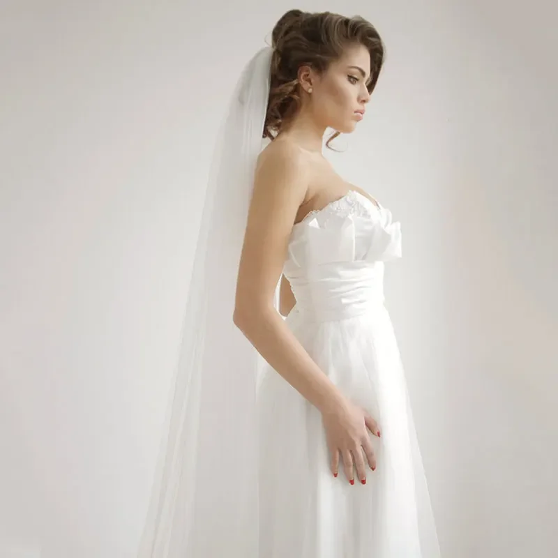 TOPQUEEN V14 웨딩 베일 짧은 연필 가장자리 간단한 신부 베일 한 레이 우아한 Rochii 웨딩 베일 빗 소프트 싱글