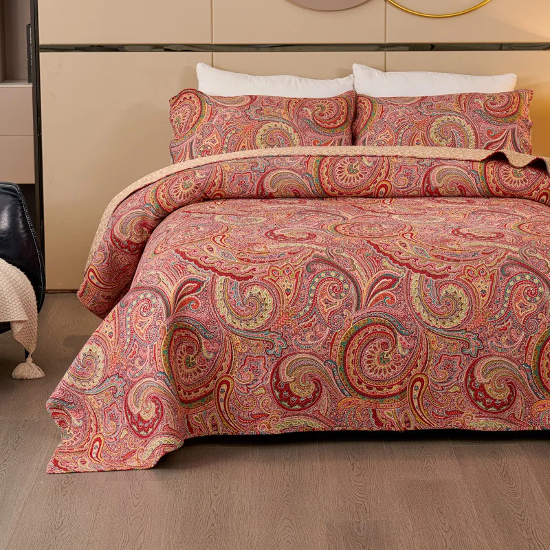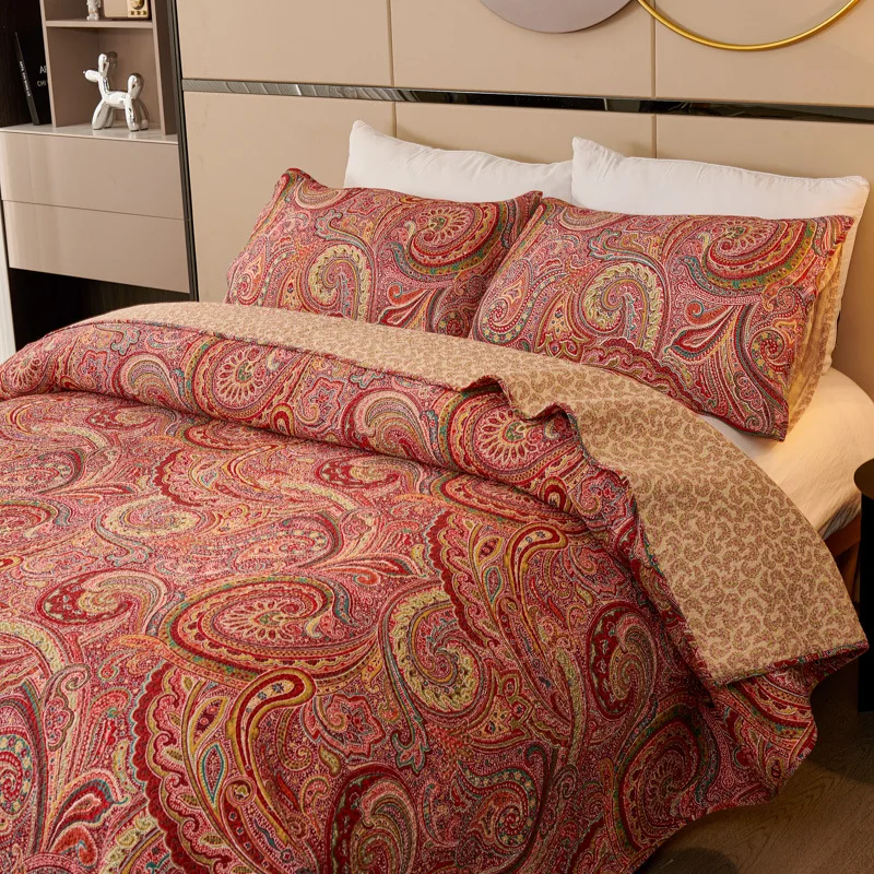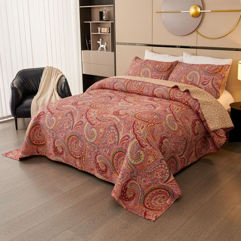 3PCS 인쇄 면화 이불 세트 경량 여름 침대보 – 퀸 사이즈 페이즐리 닫기 누비 이불 침대용 담요