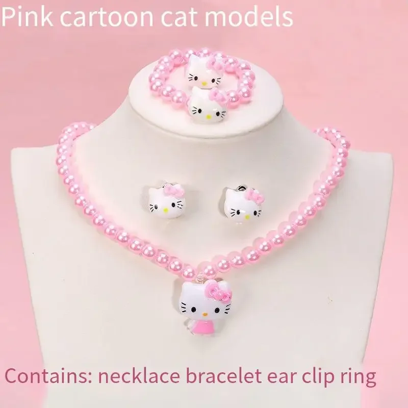 4 개/대 만화 Sanrio Kawaii 헬로 키티 목걸이 헤어 클립 반지 세트 장난감 어린이 머리핀 소녀 하트 액세서리 생일 선물