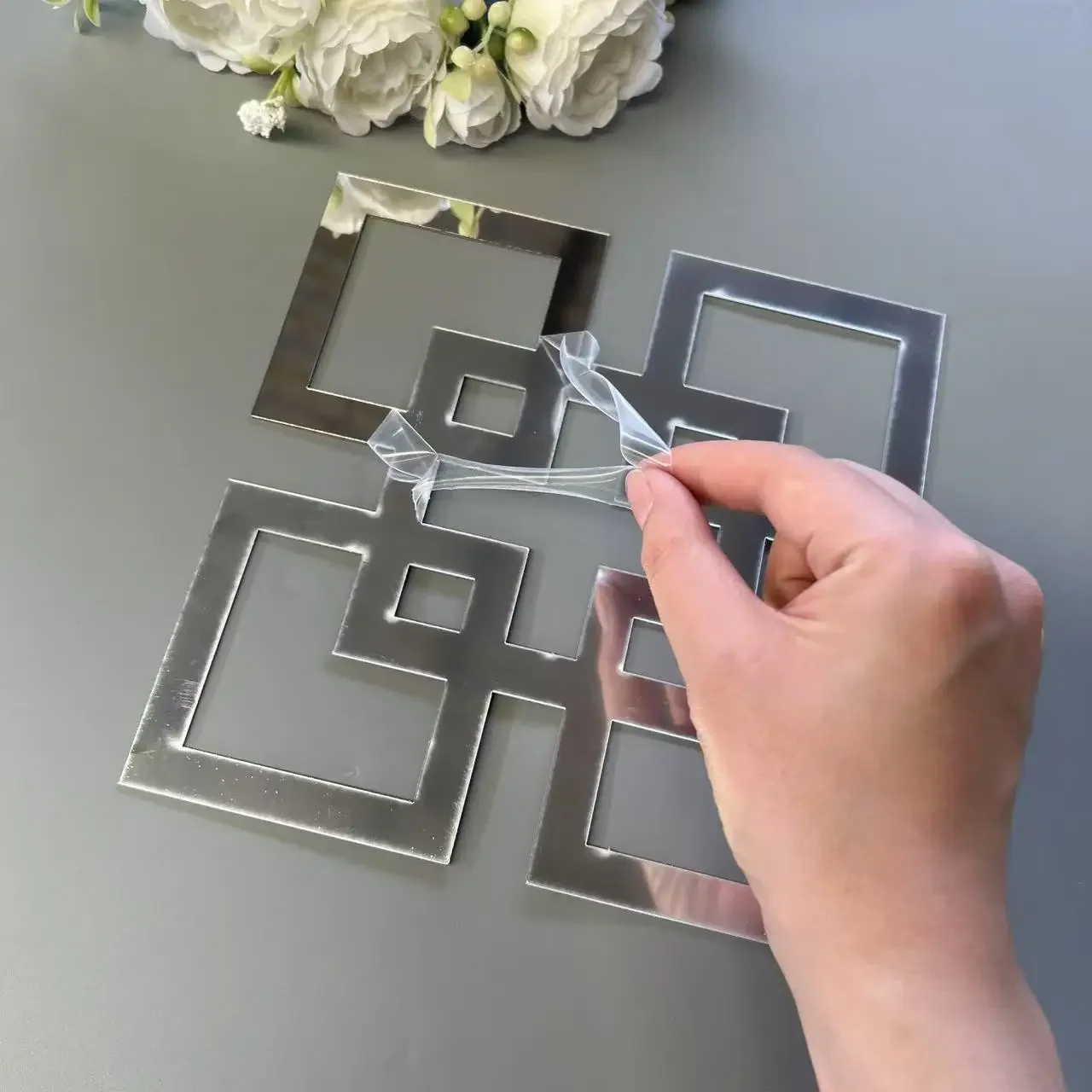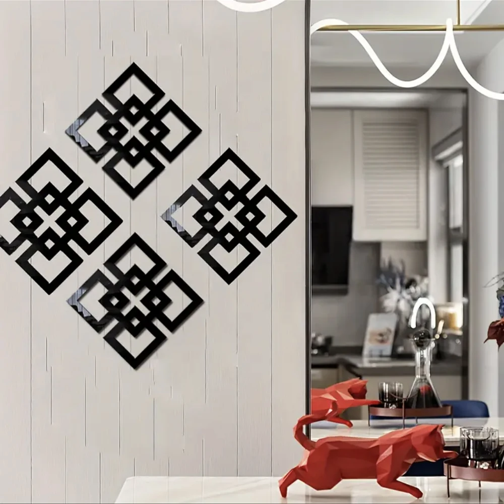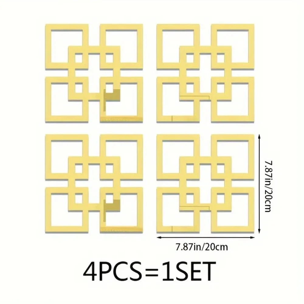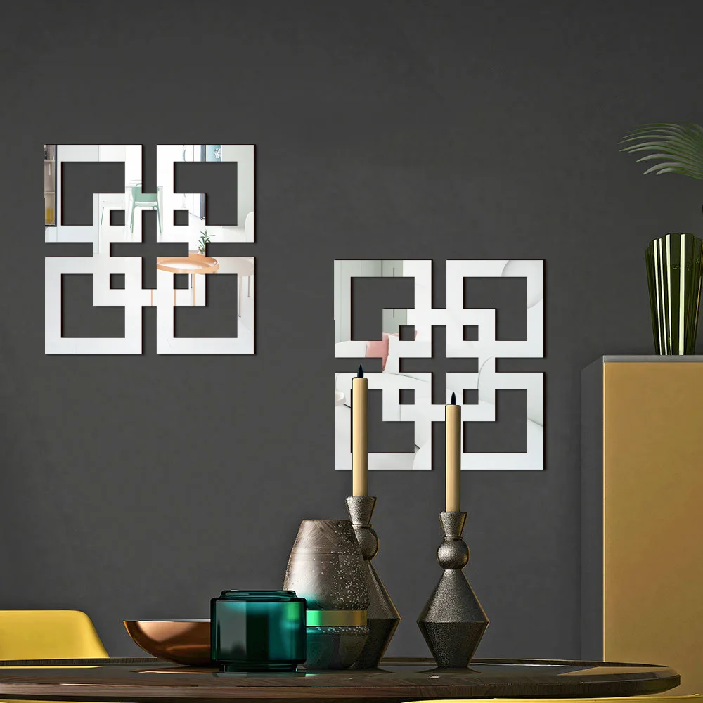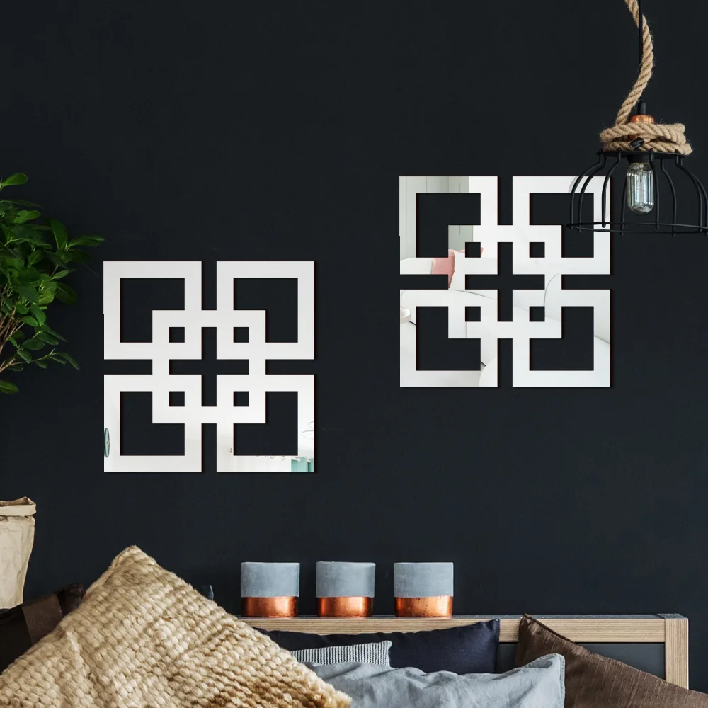 4/8/12pcs 기하학 거울 벽 스티커 아크릴 사각형 벽 데칼 자기 접착제 장식 스티커 DIY 룸 홈 장식