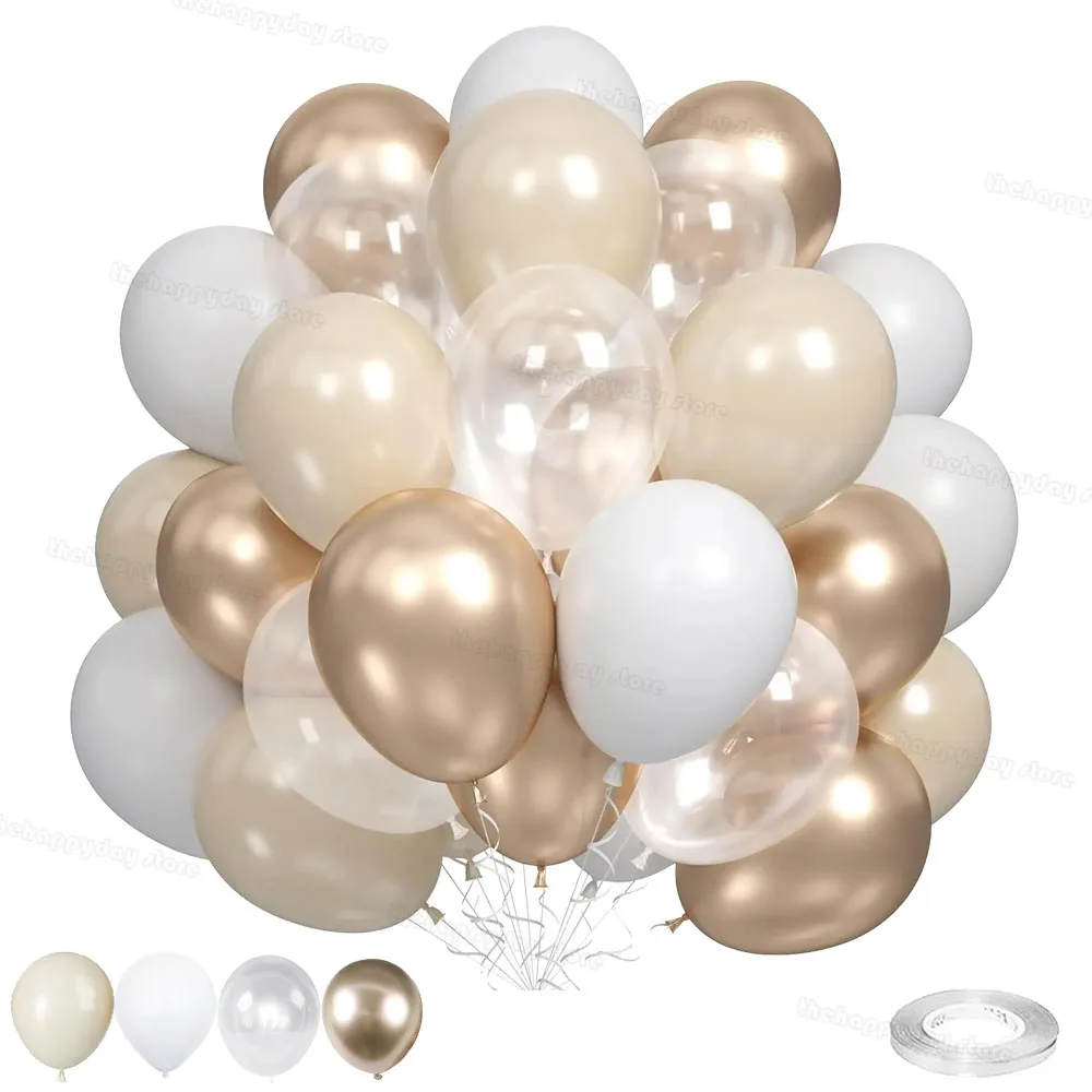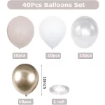 40Pcs 누드 크림 화이트 중립 풍선 Boho 생일 베이비 샤워 웨딩 파티 장식에 대 한 크롬 금속 라텍스 샴페인 풍선