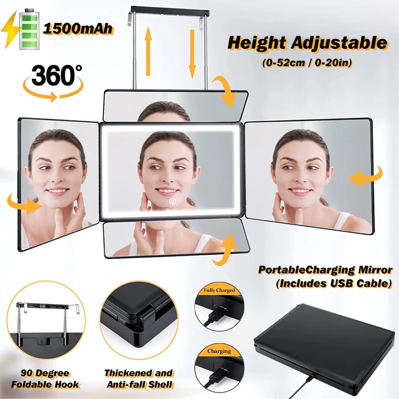 ✅높이 조절 가능-5 방향 거울의 텔레스코픽 훅을 쉽게 꺼낼 수 있습니다. 문이나 다른 프레임에 걸 수 있습니다. 그리고 편안한 셀프 그루밍 경험을 위해 필요에 따라 거울 높이를 조정할 수 있습니다.