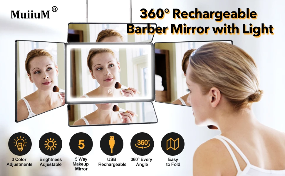 ✅셀프 헤어 커팅을위한 360 ° 쉬운-5 중 거울은 자유롭게 회전하고 필요에 따라 모든 위치에서 고정 할 수 있습니다. 머리의 모든 각도를 쉽게 볼 수 있습니다. 집에서 머리카락을 자르는 것이 매우 편리합니다.